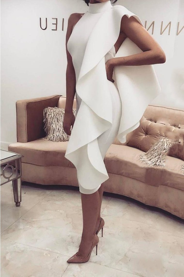 2024 High Neck Sheath Cocktail Dresses Satin Tea Length