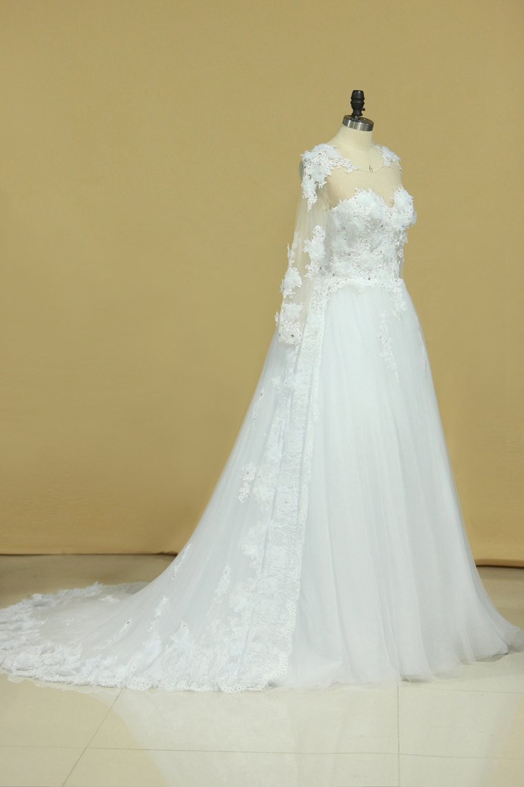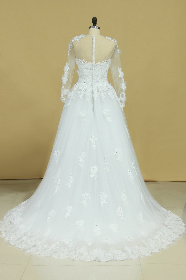 2024 Hot Long Sleeves Wedding Dresses Scoop Tulle With Applique