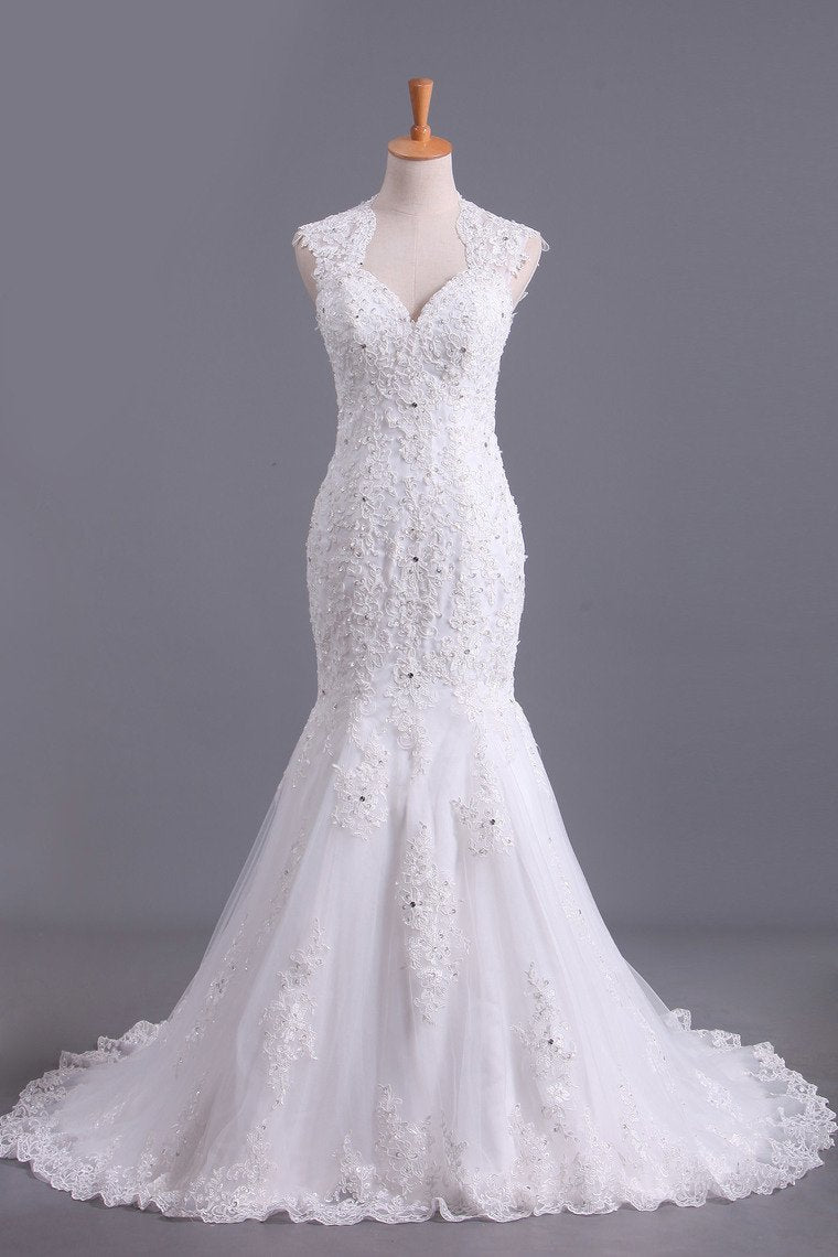 2024 Hot Mermaid/Trumpet Wedding Dresses With Applique & Beads Open Back