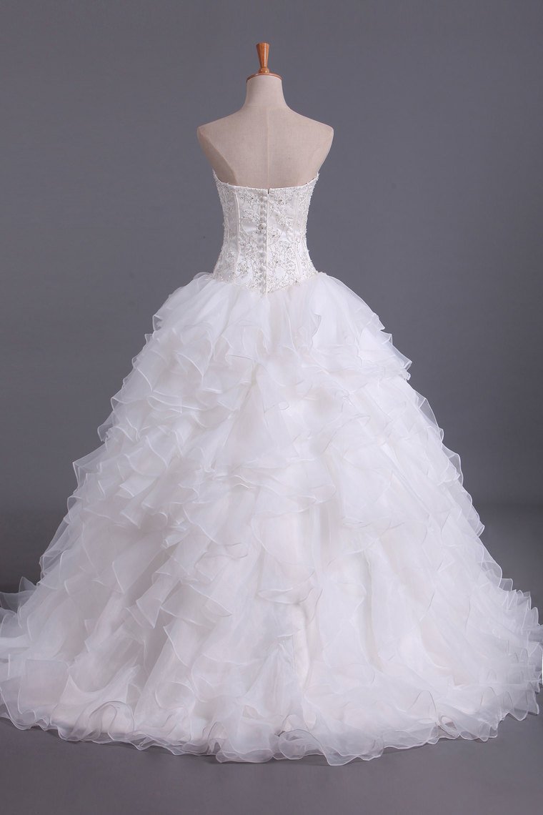2024 Hot Wedding Dresses Sweetheart With Beads & Applique A Line Organza