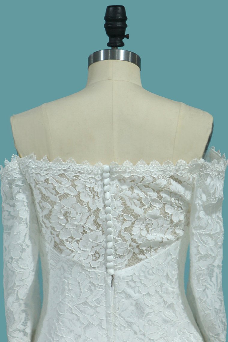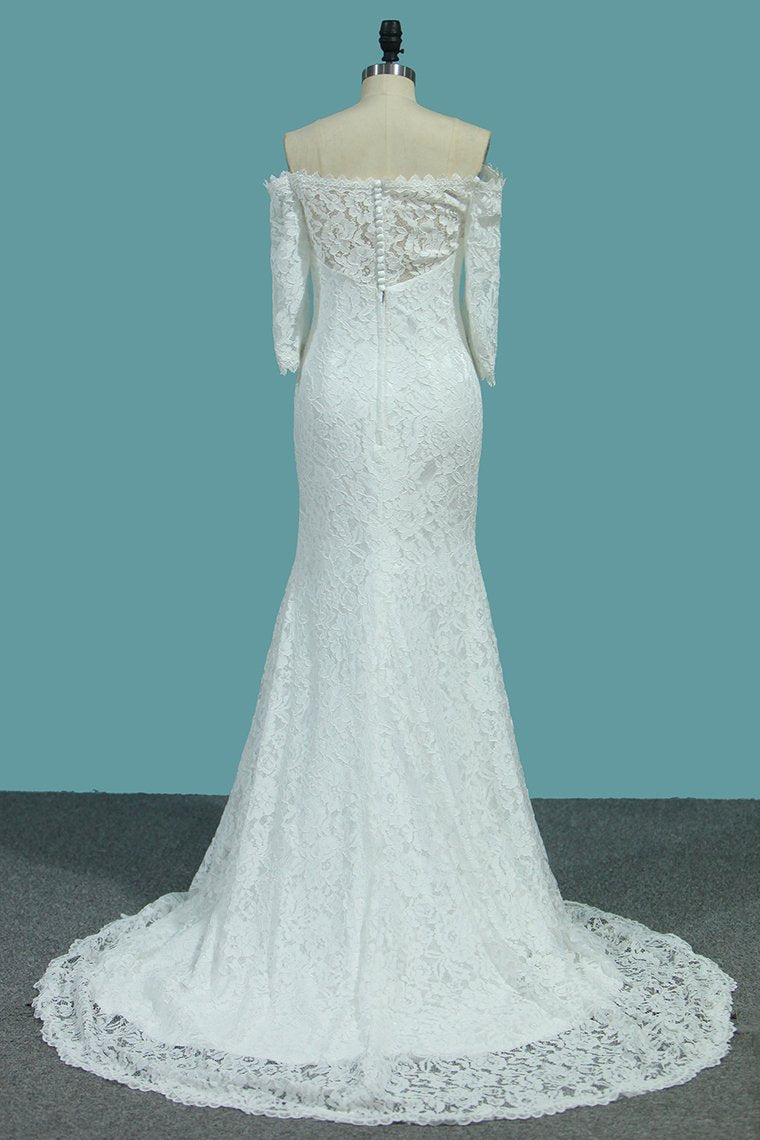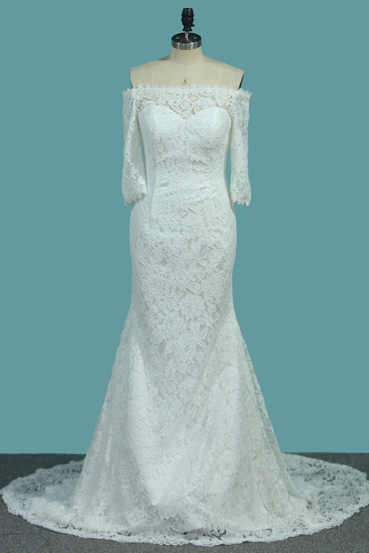 2024 Lace Mermaid Boat Neck 3/4 Length Sleeves Wedding Dresses Sweep Train