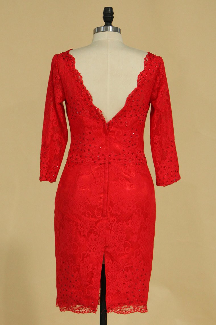2024 Lace Scoop Mother Of The Bride Dresses Sheath 3/4 Length Sleeves