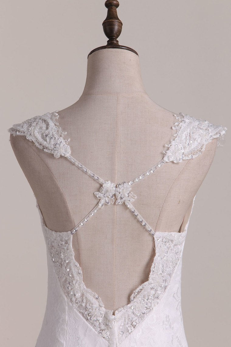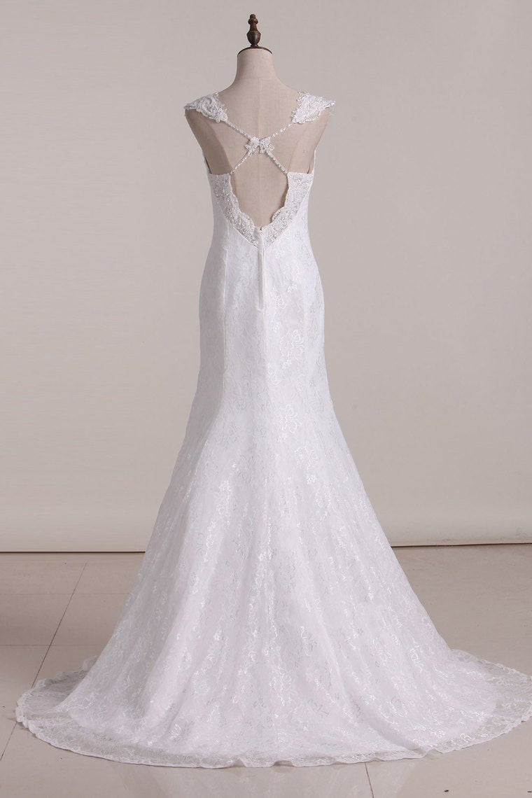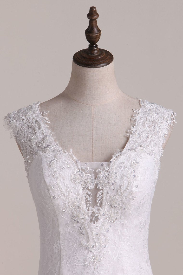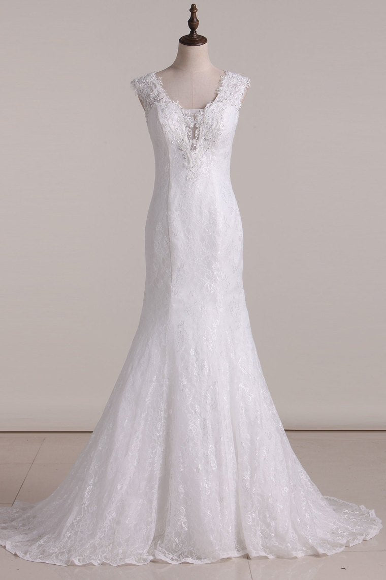2024 Lace V Neck Open Back Mermaid Wedding Dresses With Applique