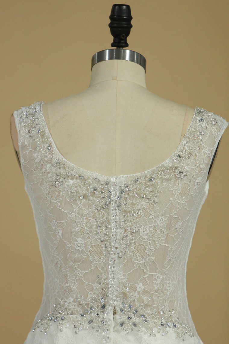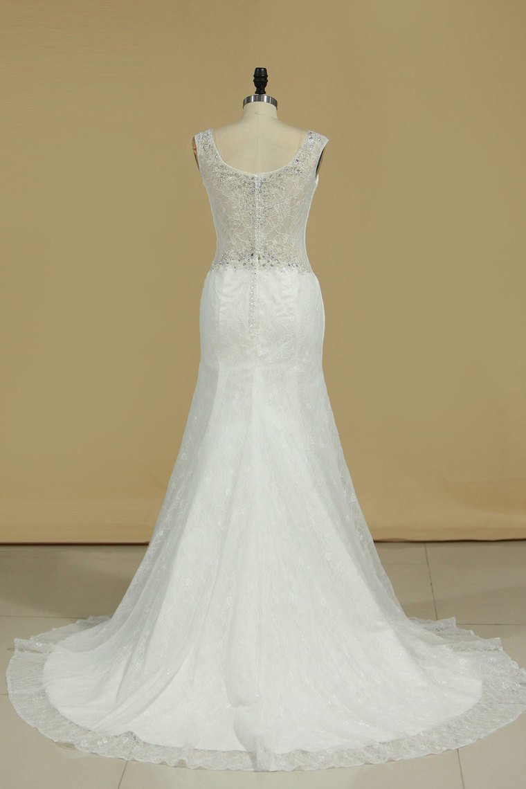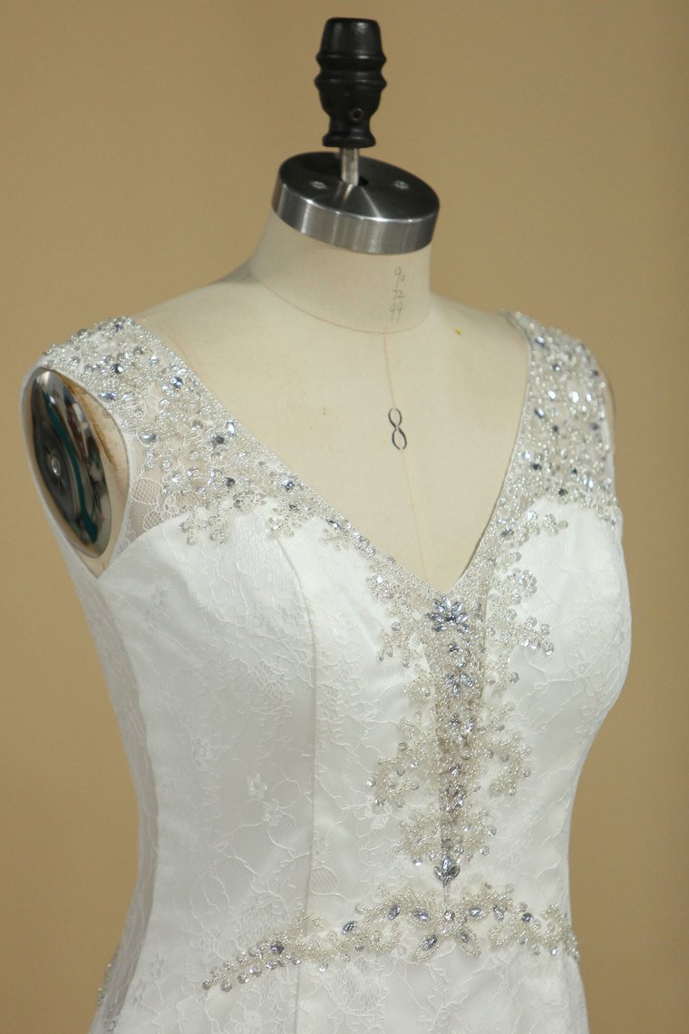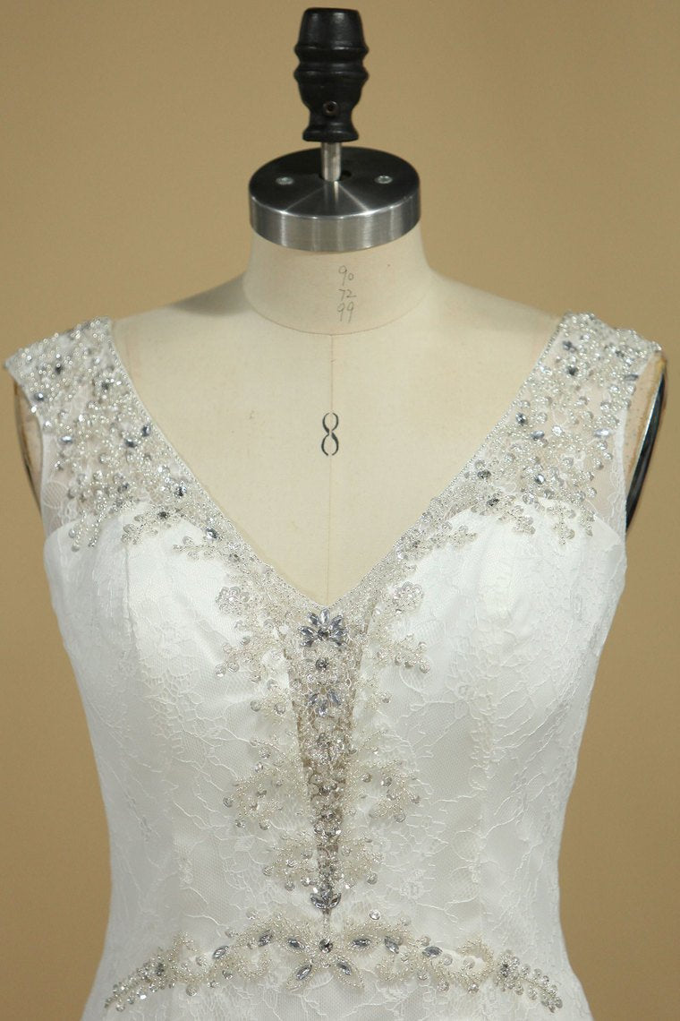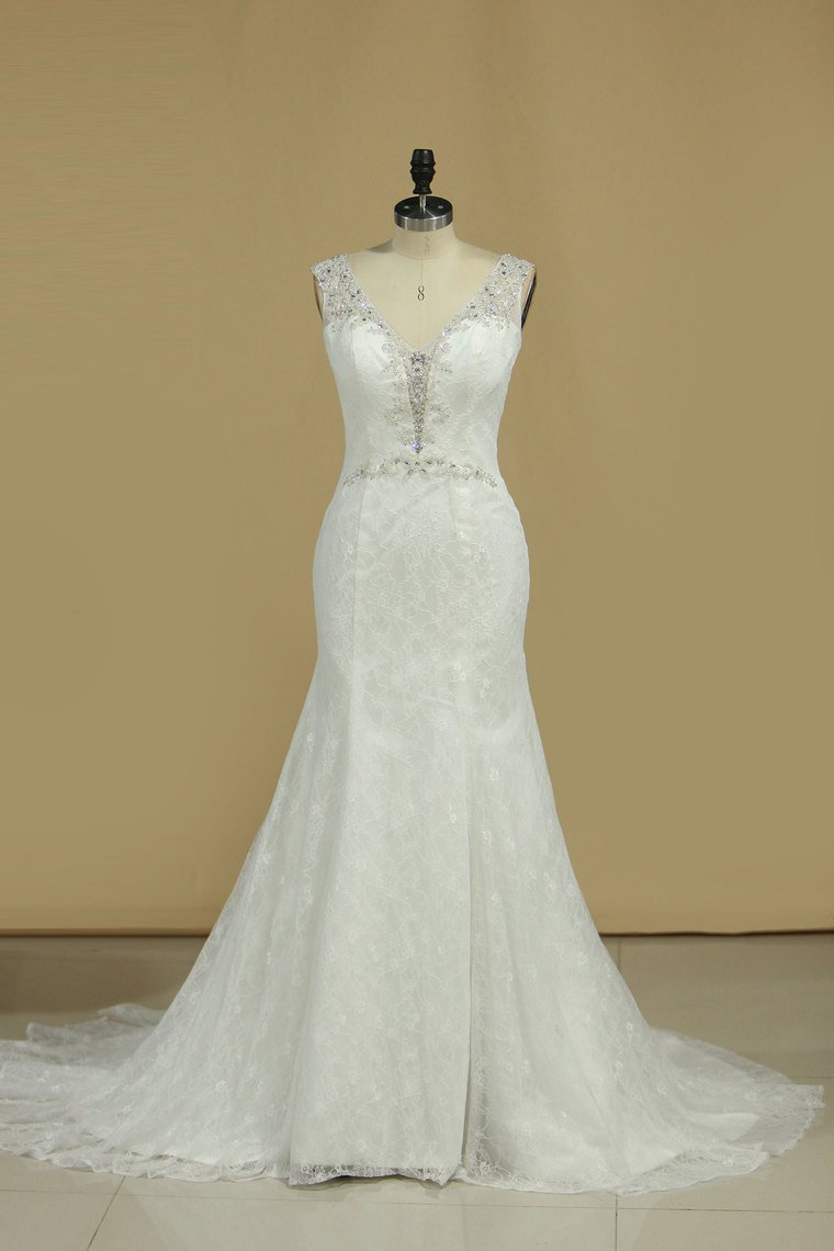 2024 Lace Wedding Dresses Mermaid V Neck With Beading Sweep Train