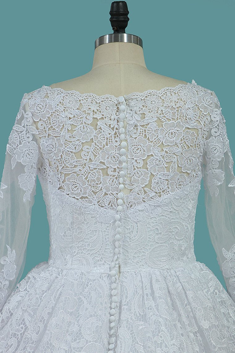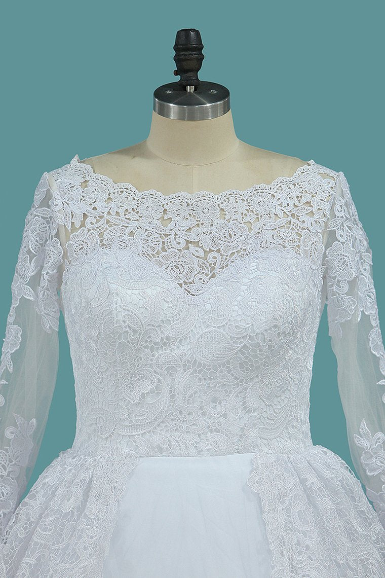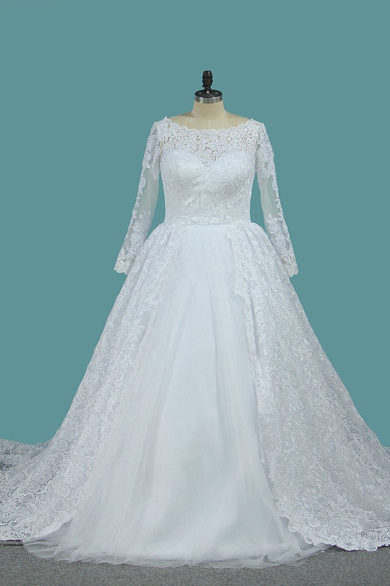 2024 Long Sleeves Ball Gown Wedding Dresses Bateau Tulle & Satin With Applique