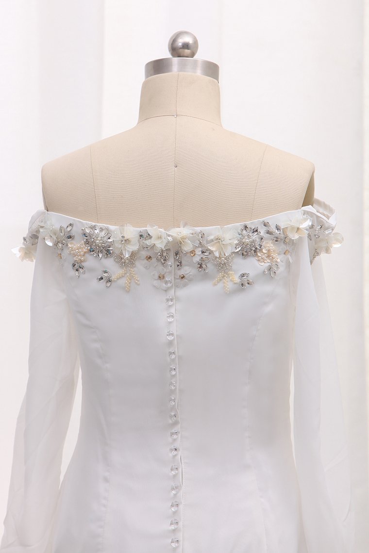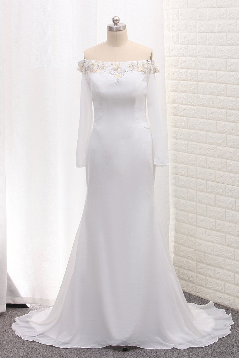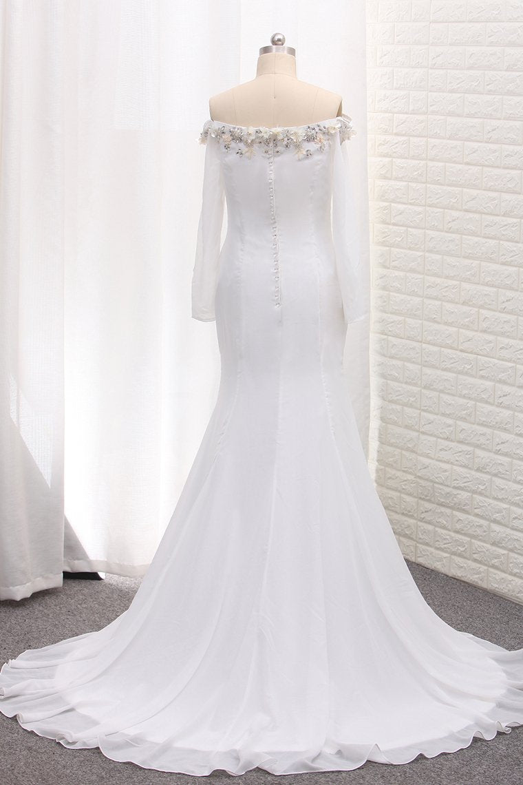 2024 Long Sleeves Chiffon Off The Shoulder Mermaid Wedding Dresses With Beading