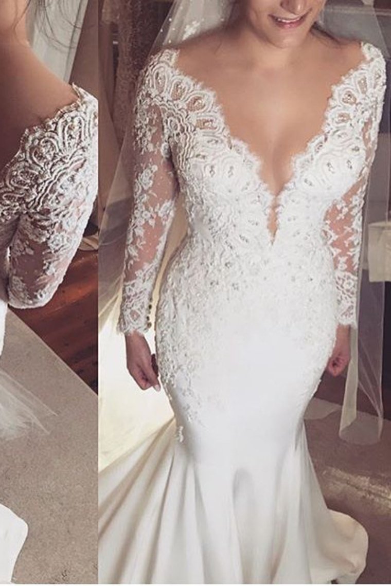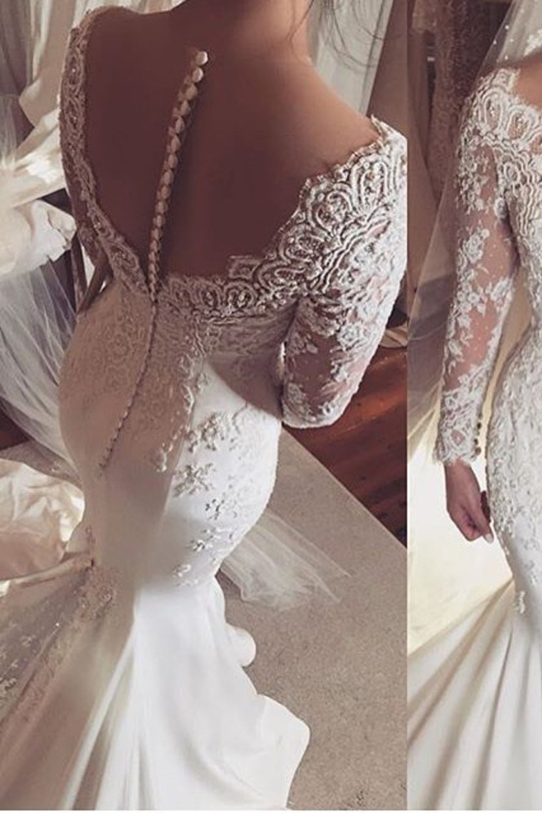 2024 Long Sleeves Satin Wedding Dresses Mermaid With Applique And Beads