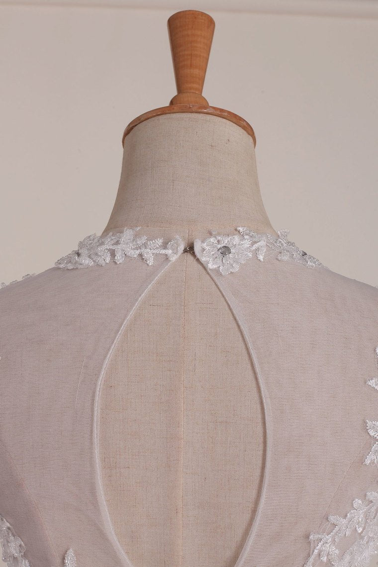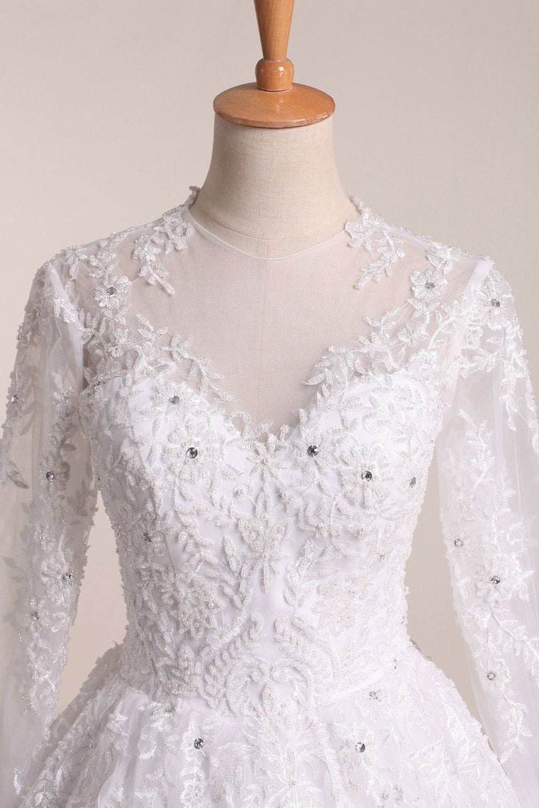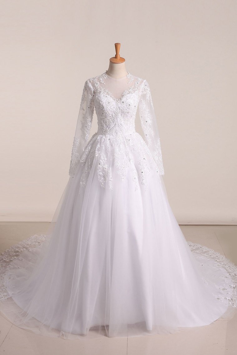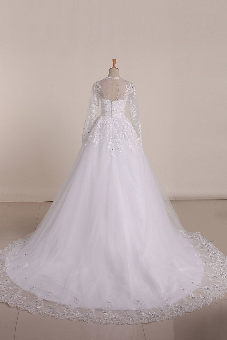 2024 Long Sleeves Scoop Wedding Dresses A Line With Applique And Beads Tulle