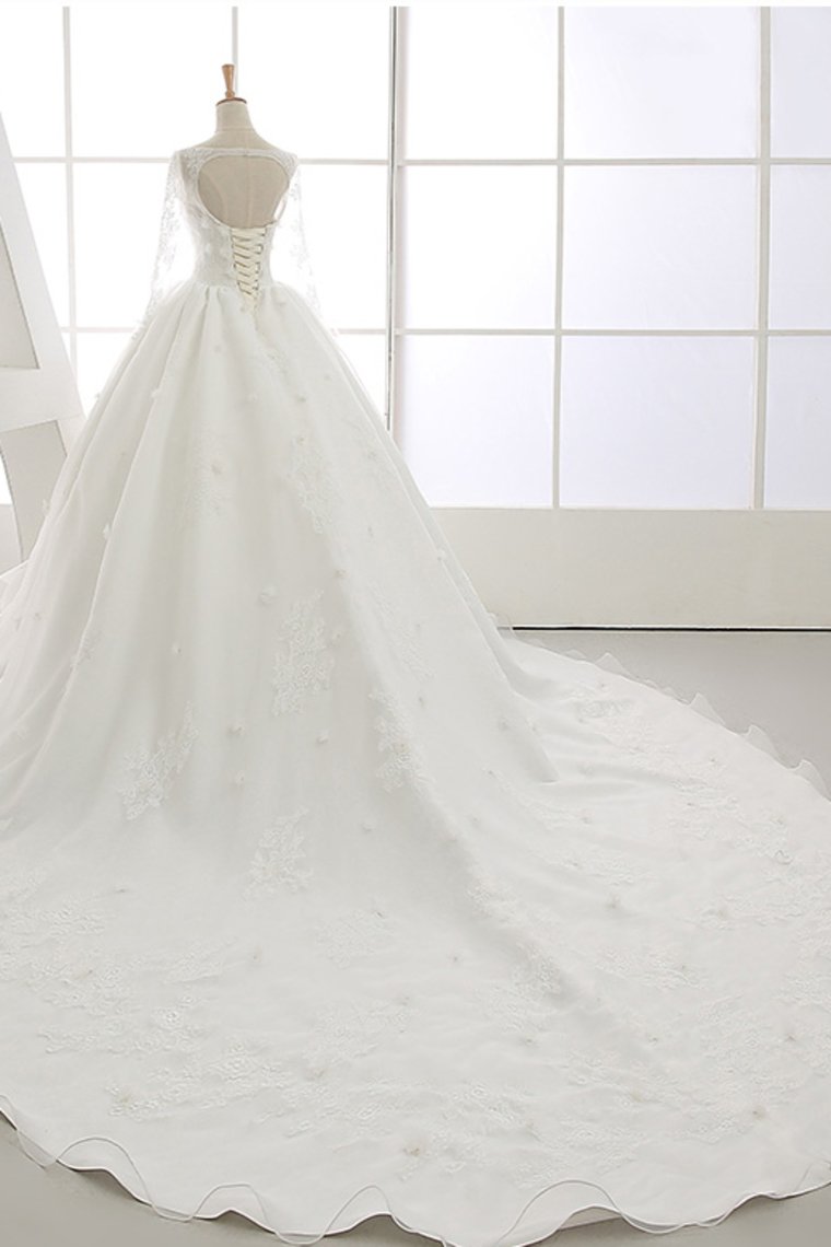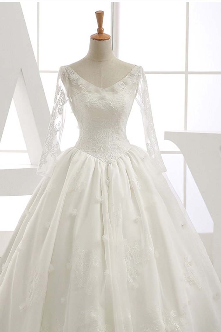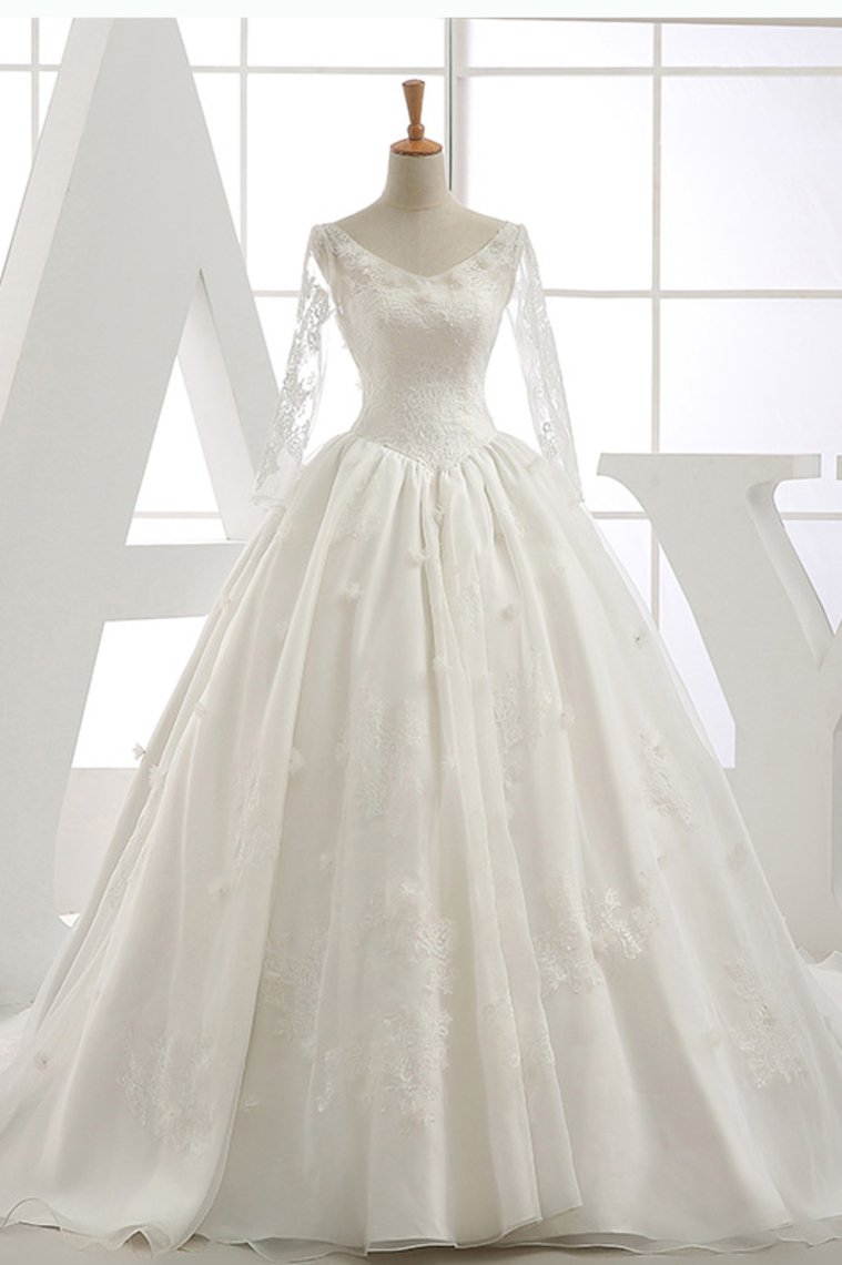 2024 Long Sleeves Wedding Dresses V Neck With Applique Organza Cathedral Train