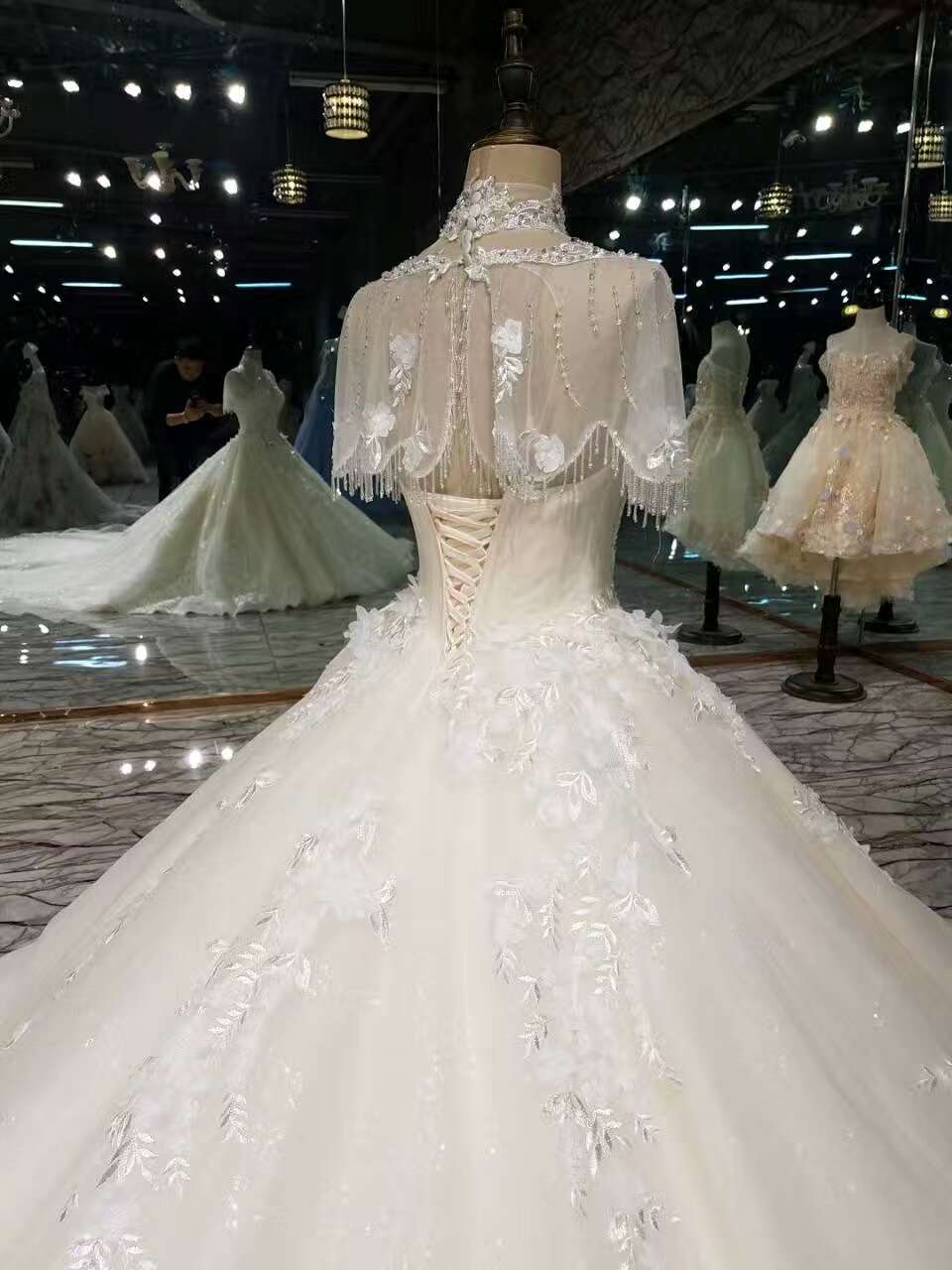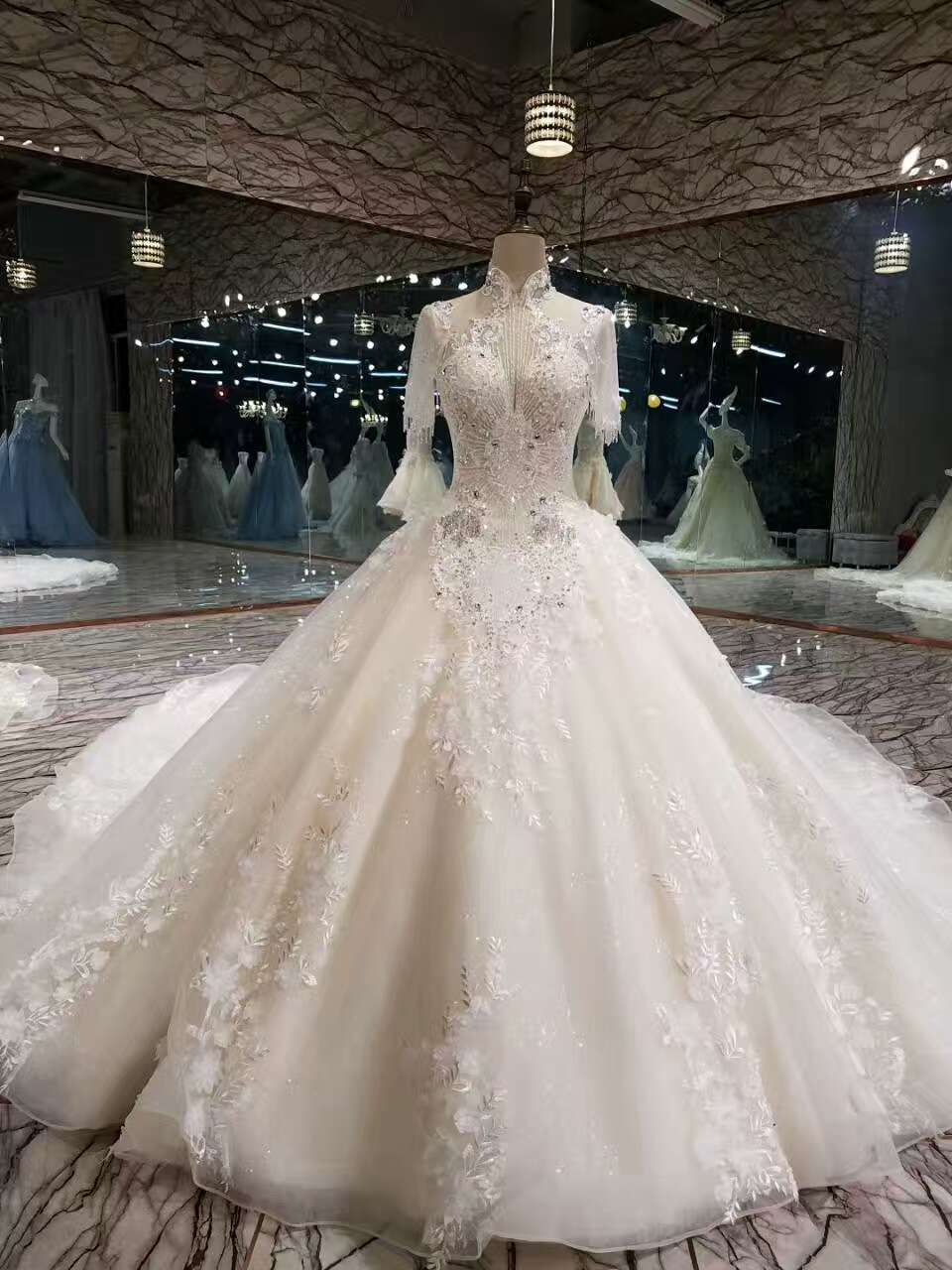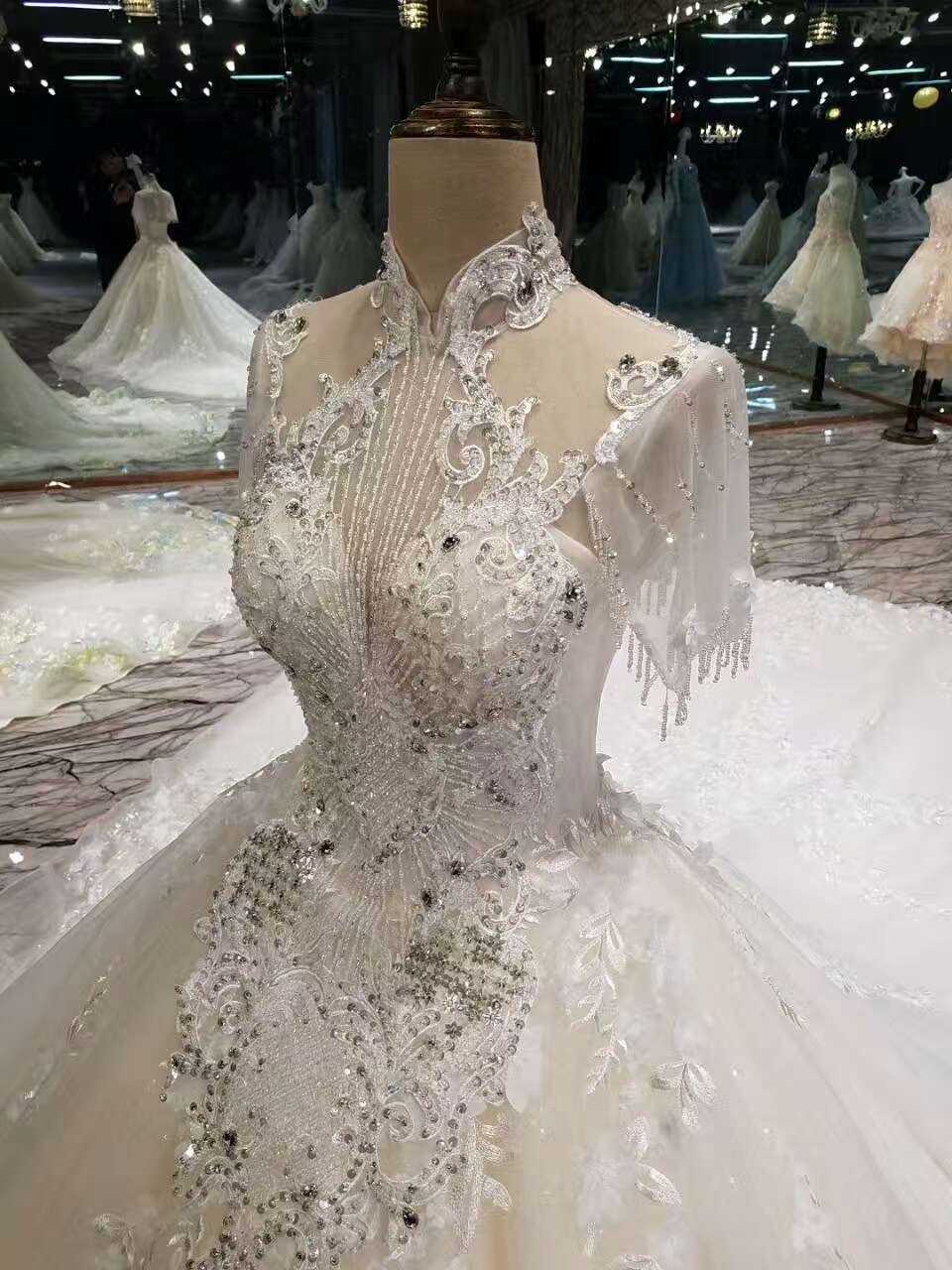 2024 Luxurious High Neck Wedding Dresses Tulle With Sequins Beads Crystals