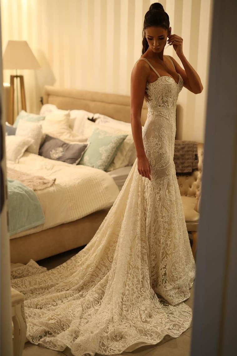 2024 Luxurious Lace Wedding Dresses Mermaid Straps Court Train