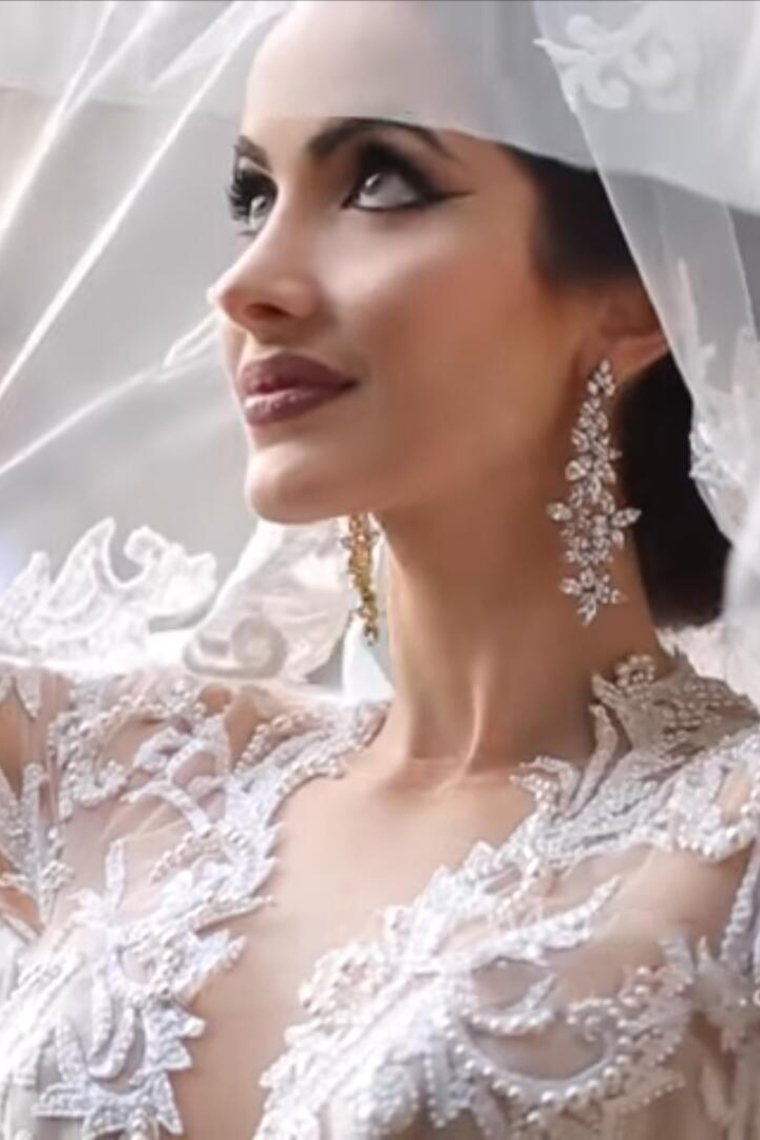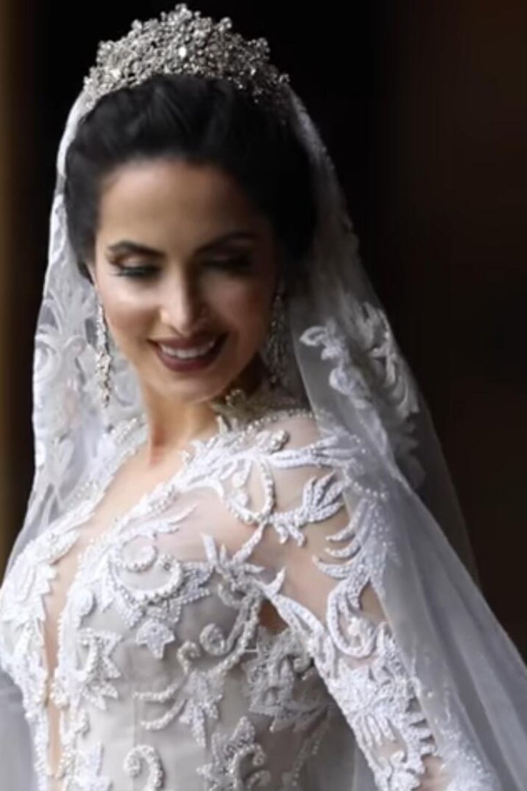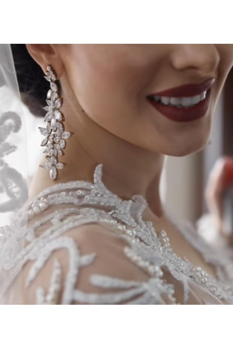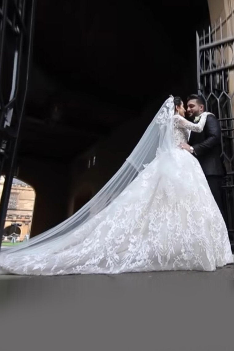 2024 Luxurious Long Sleeves Scoop A Line Lace Wedding Dresses With Pearls Royal Train
