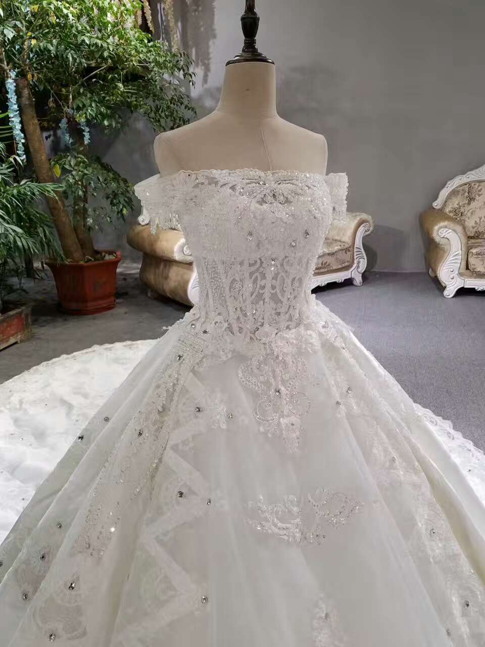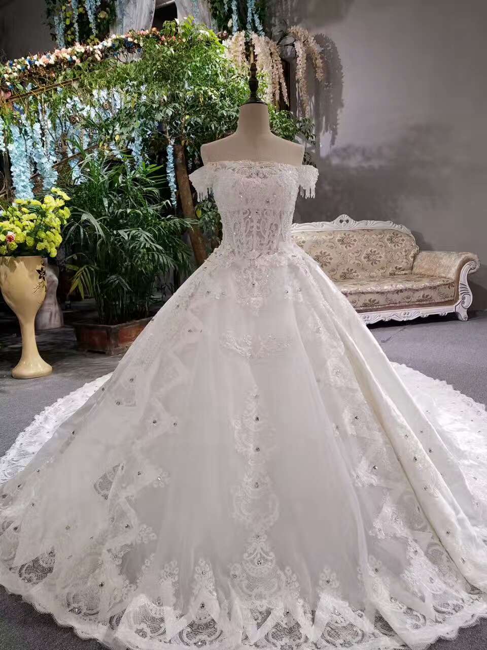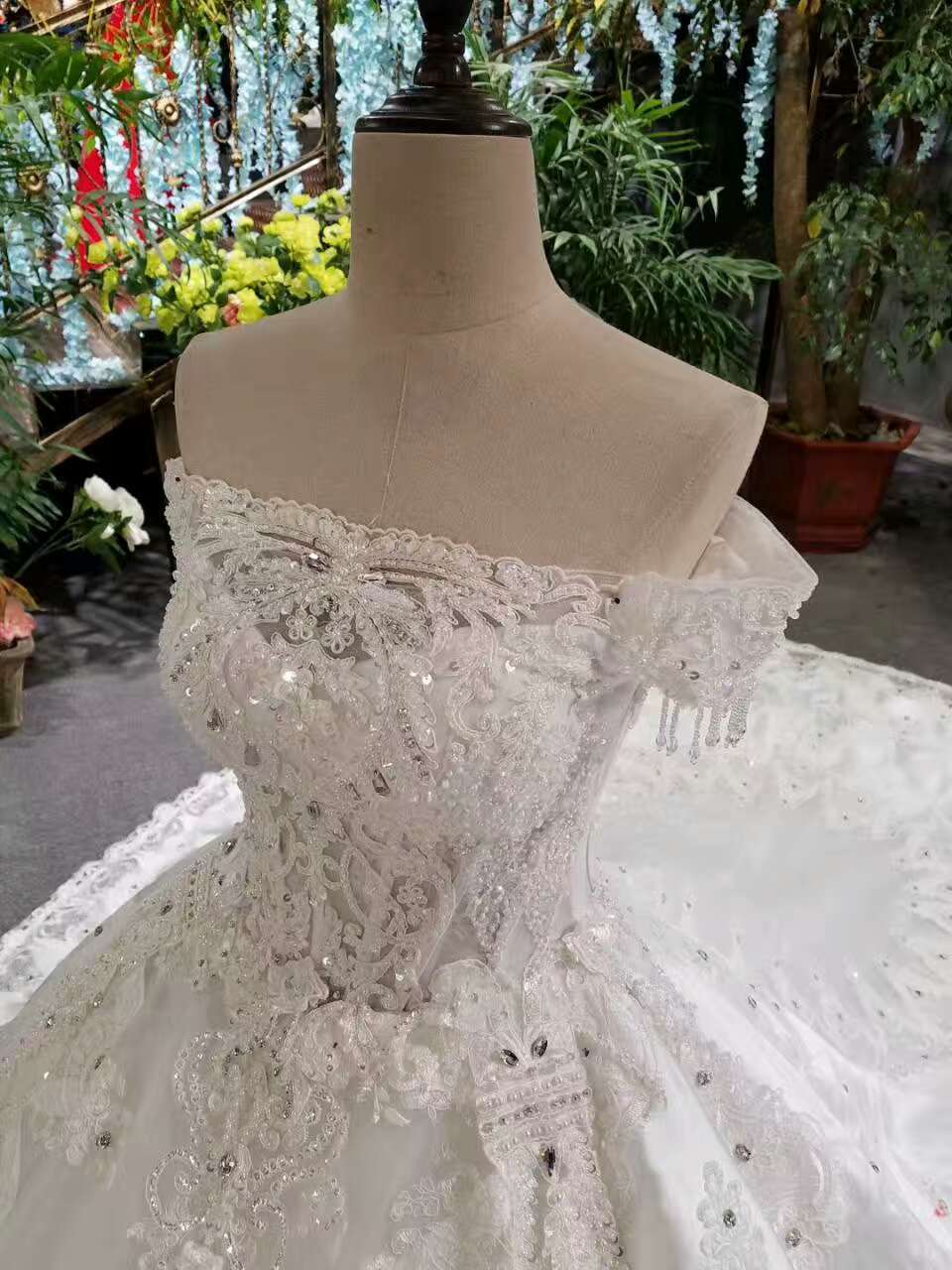 2024 Luxurious Satin Wedding Dresses Lace Up Boat Neck With Appliques And Sequins