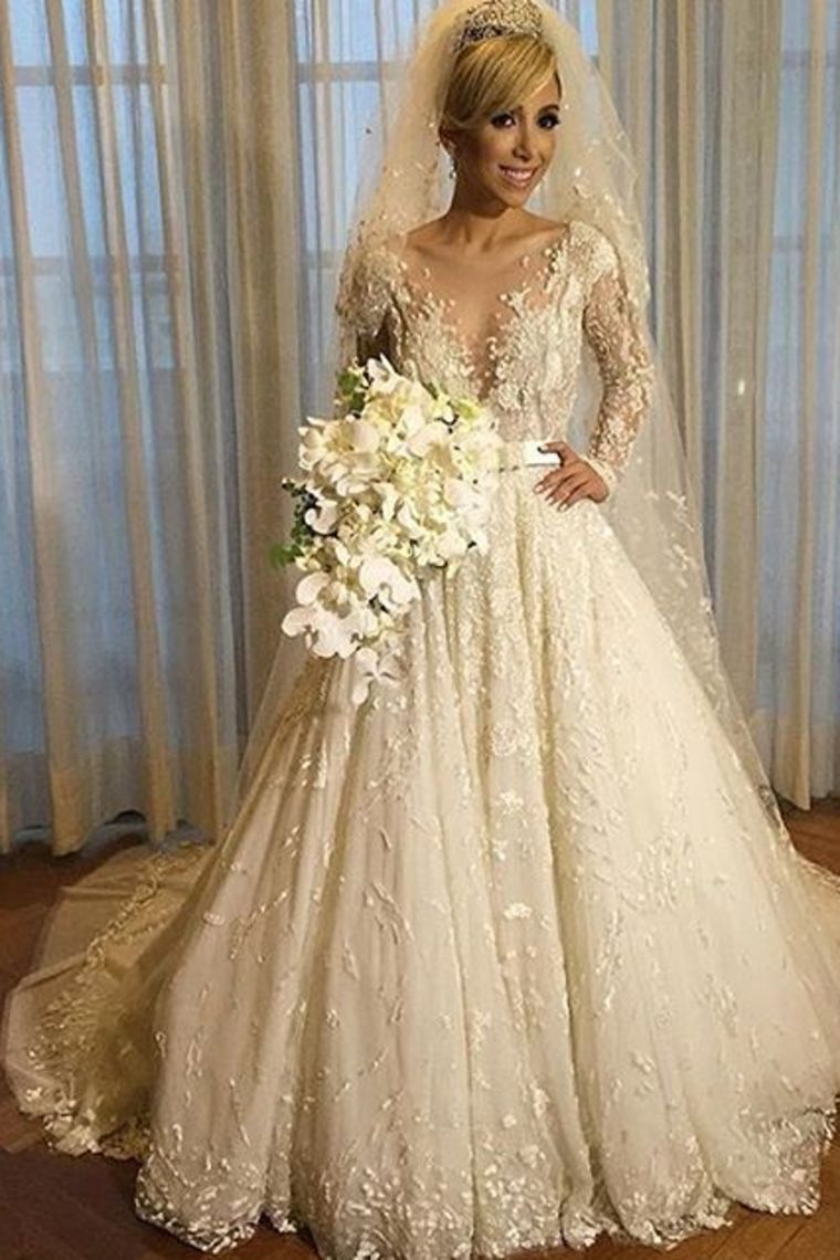 2024 Luxury New Style V-Neck A-Line Wedding Dress Long Sleeves With Bow Knot