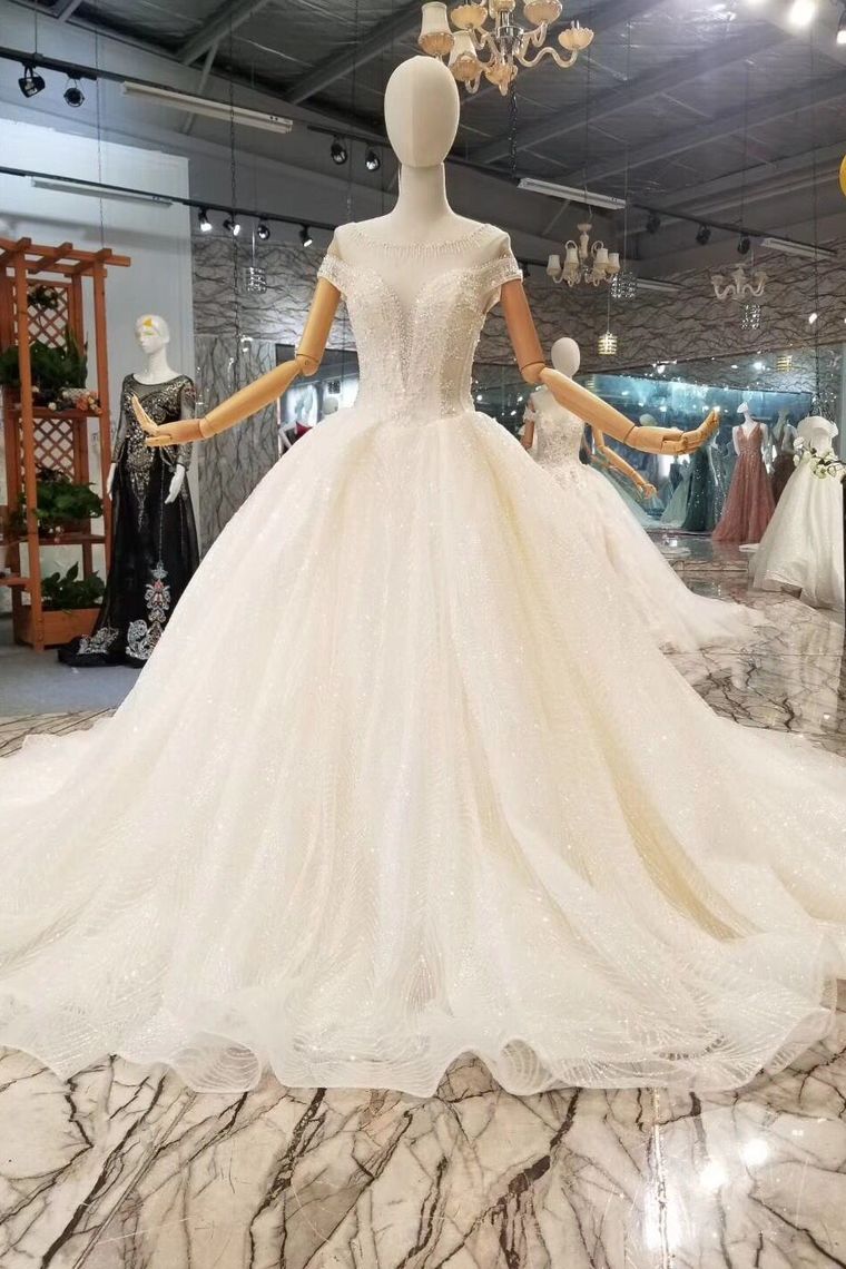 2024 Luxury Wedding Dresses V-Neck Ball Gown Chapel Train