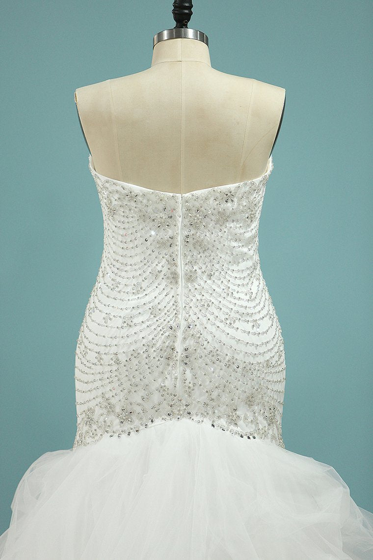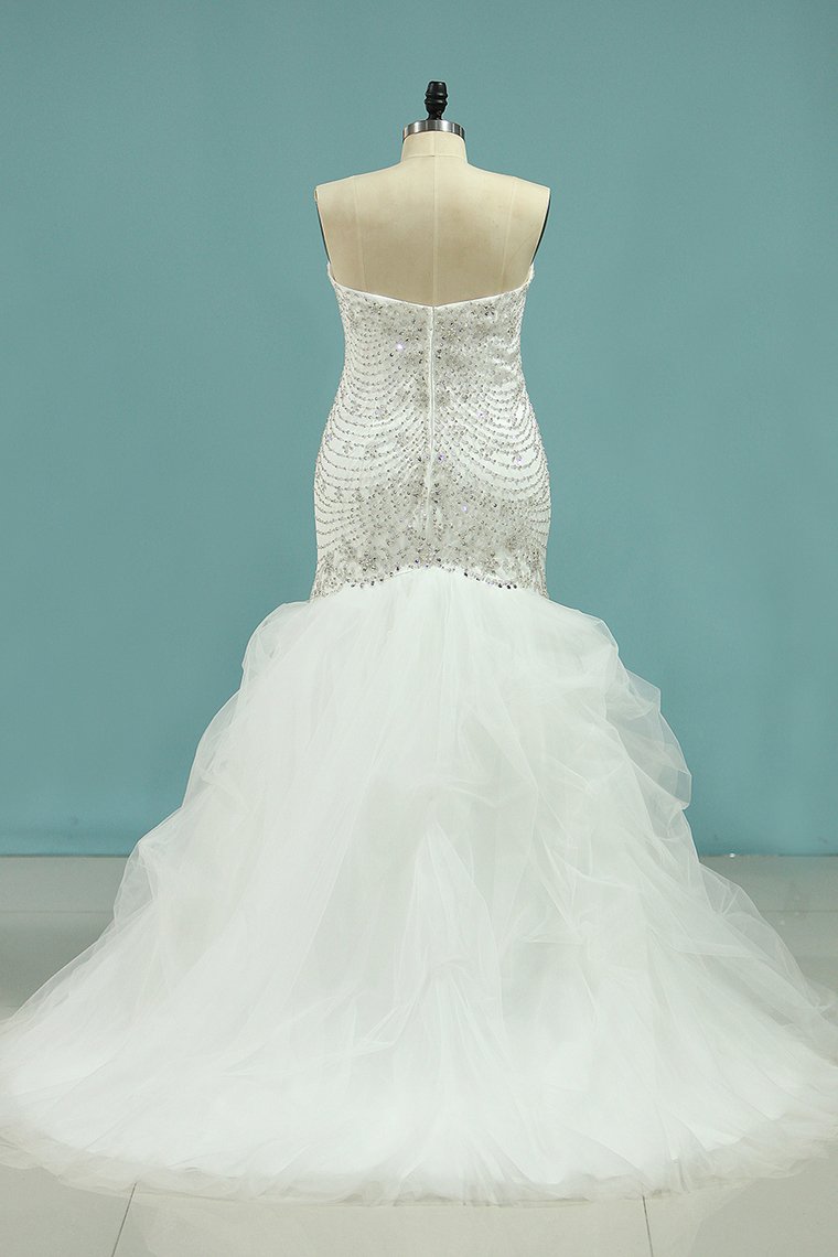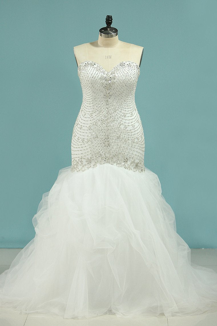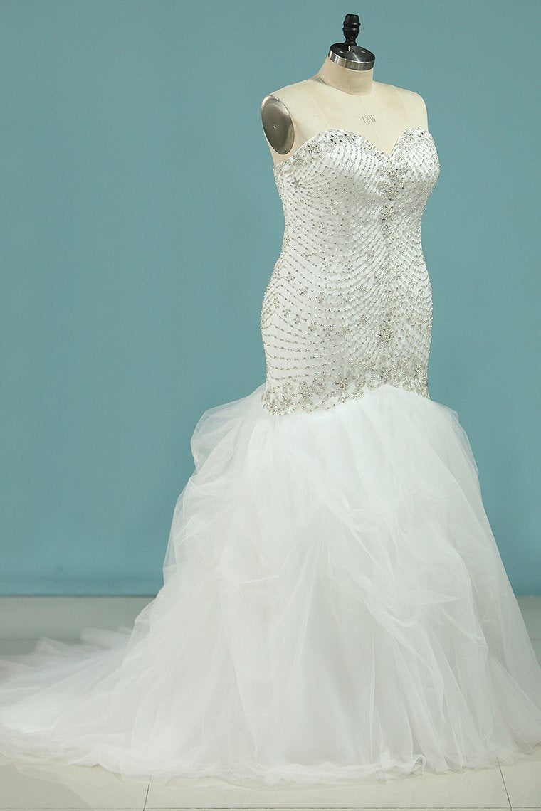 2024 Mermaid Beaded Bodice Wedding Dresses Sweetheart Tulle Sweep Train