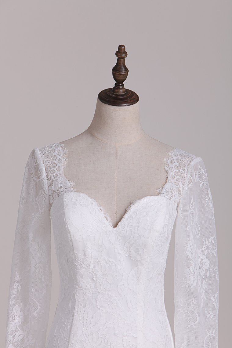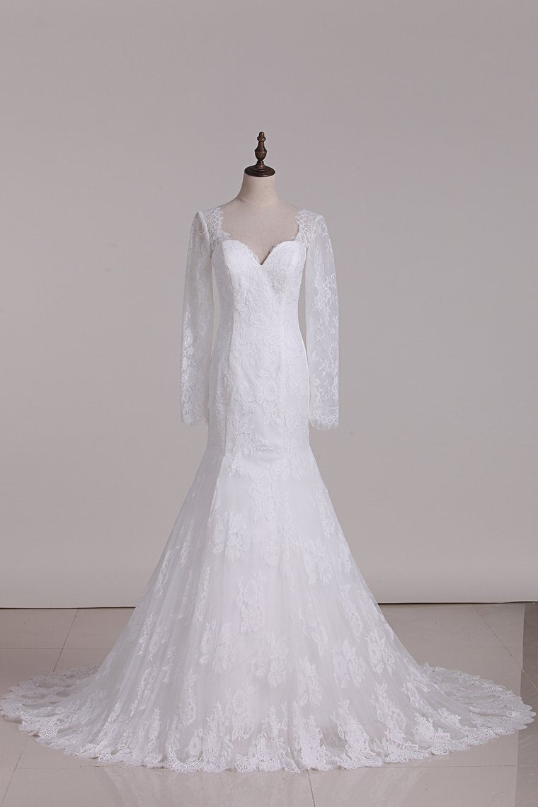 2024 Mermaid Long Sleeves Tulle Wedding Dresses With Applique