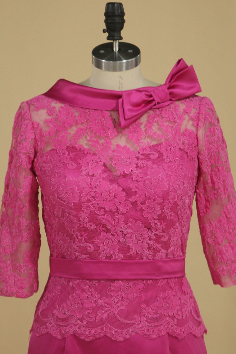 2024 Mermaid Mother Of The Bride Dresses Scoop Half Sleeve Satin With Applique And Bow Knot
