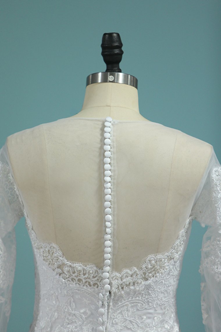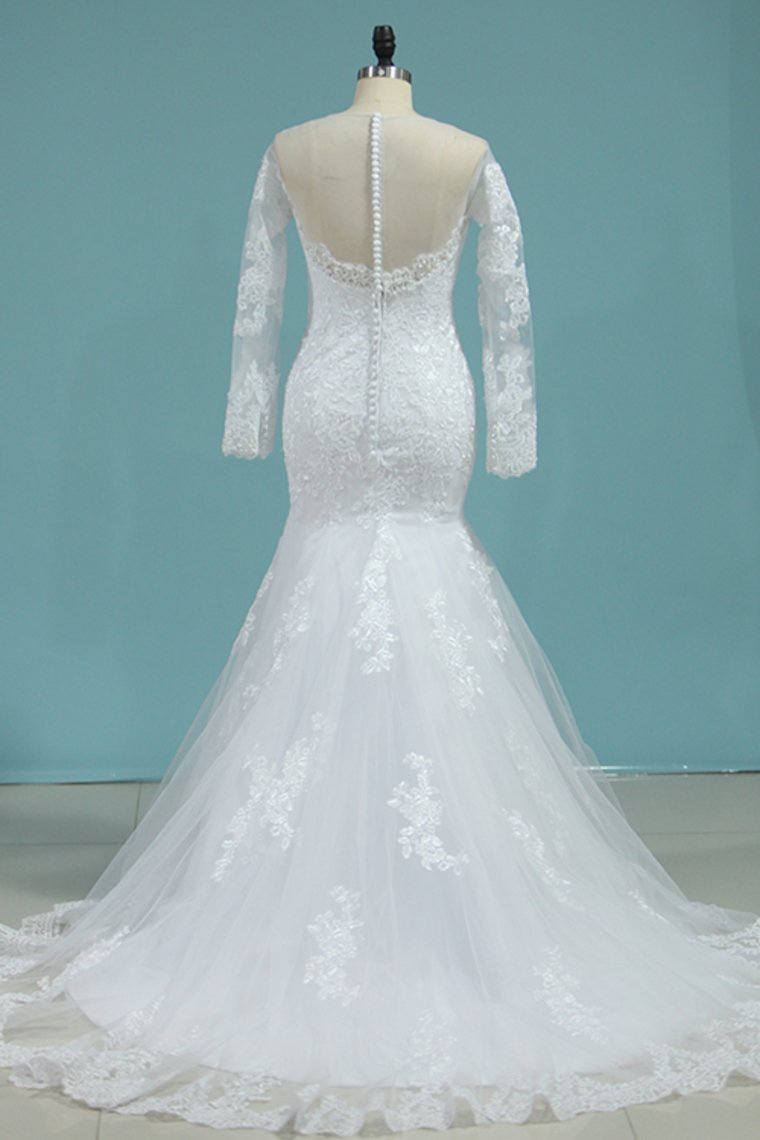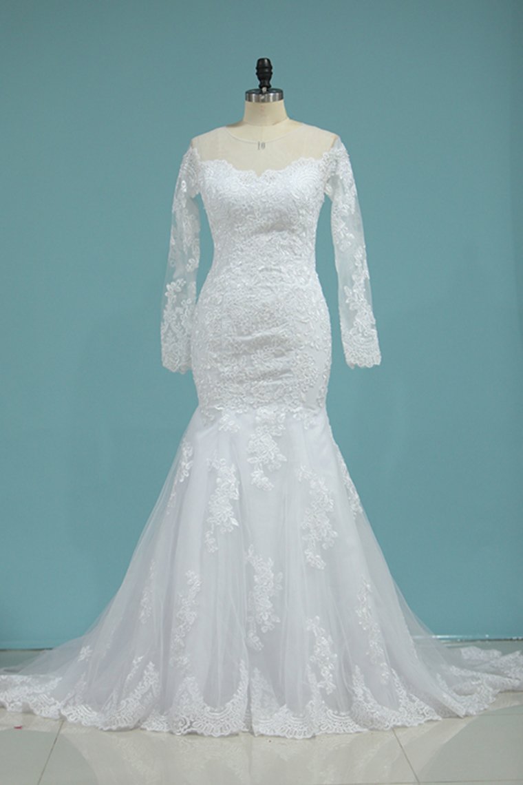 2024 Mermaid New Arrival Scoop Wedding Dresses Tulle With Applique