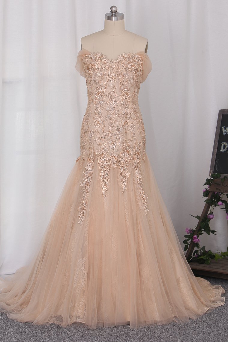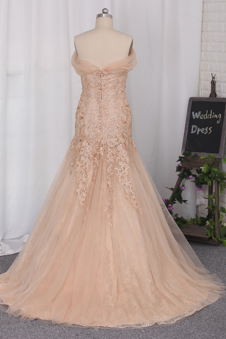 2024 Mermaid Off The Shoulder Wedding Dresses Tulle With Applique