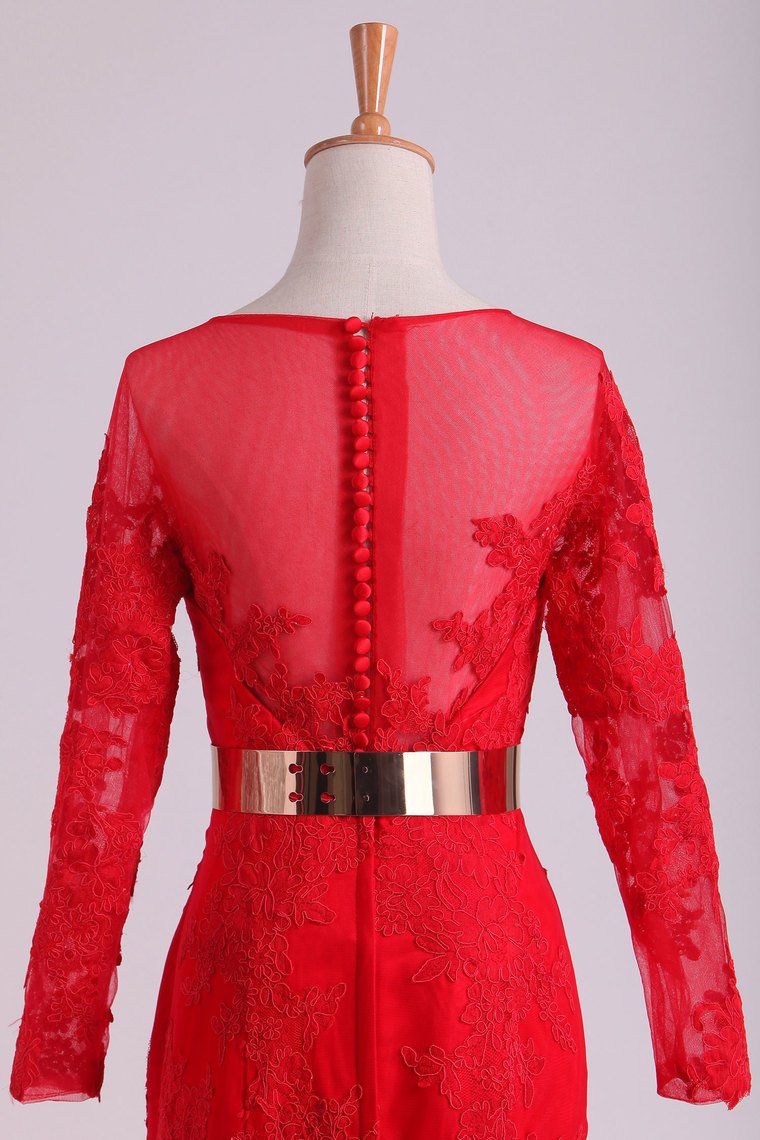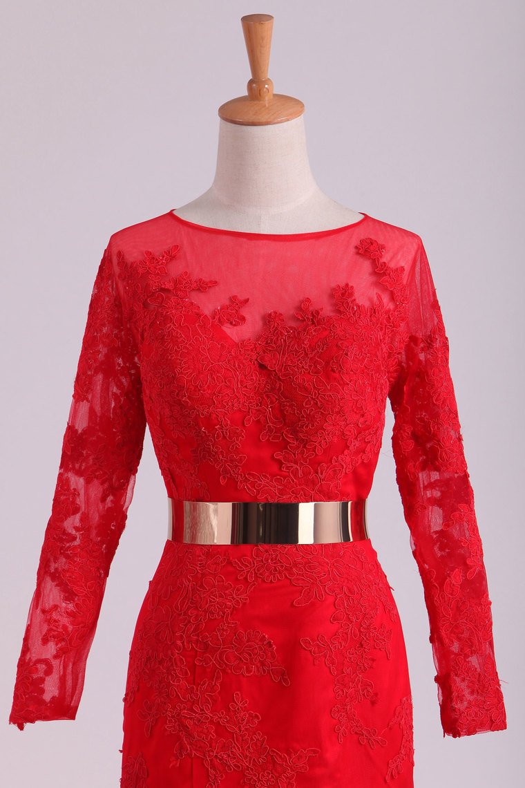2024 Mermaid Scoop Mother Of The Bride Dresses 3/4 Length Sleeves With Applique Tulle