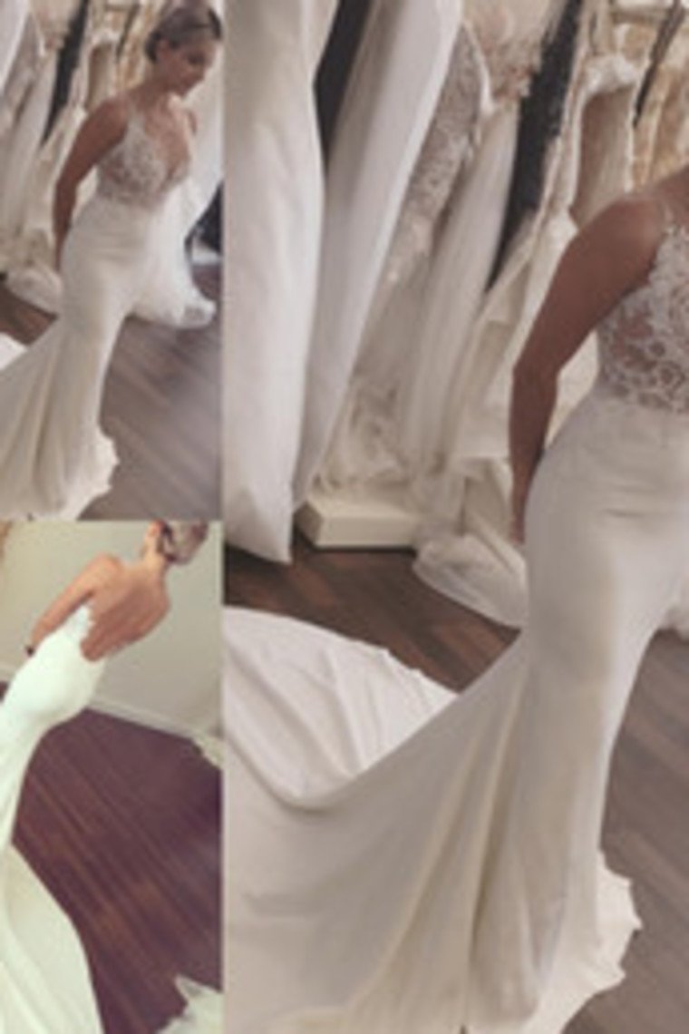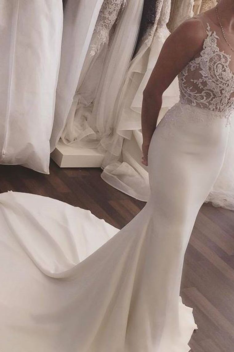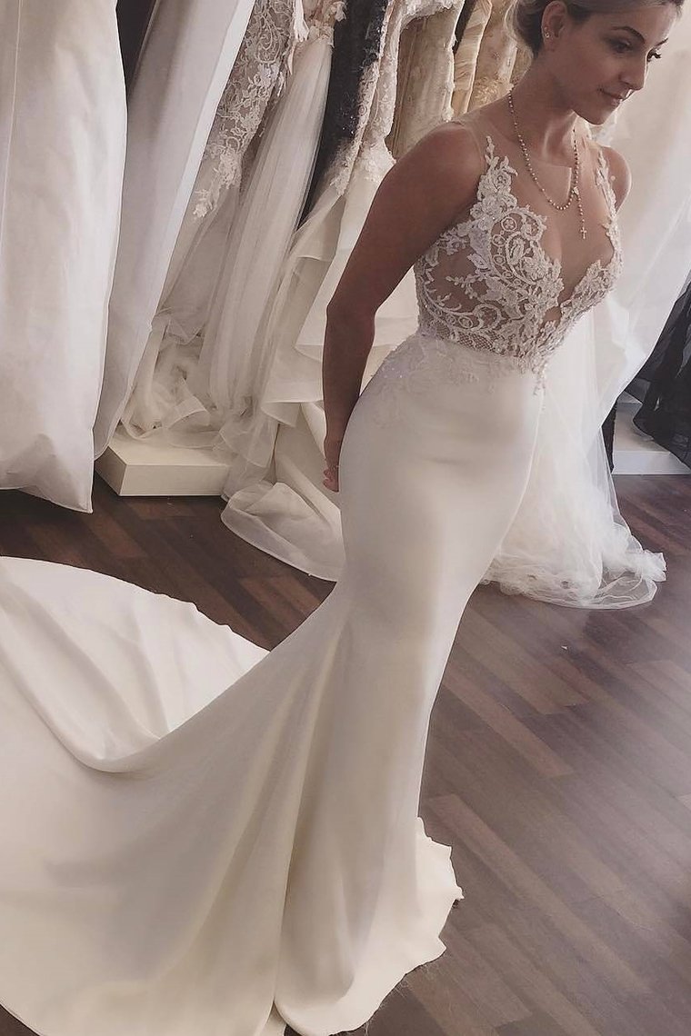 2024 Mermaid Scoop Satin With Appliques Wedding Dresses Court Train