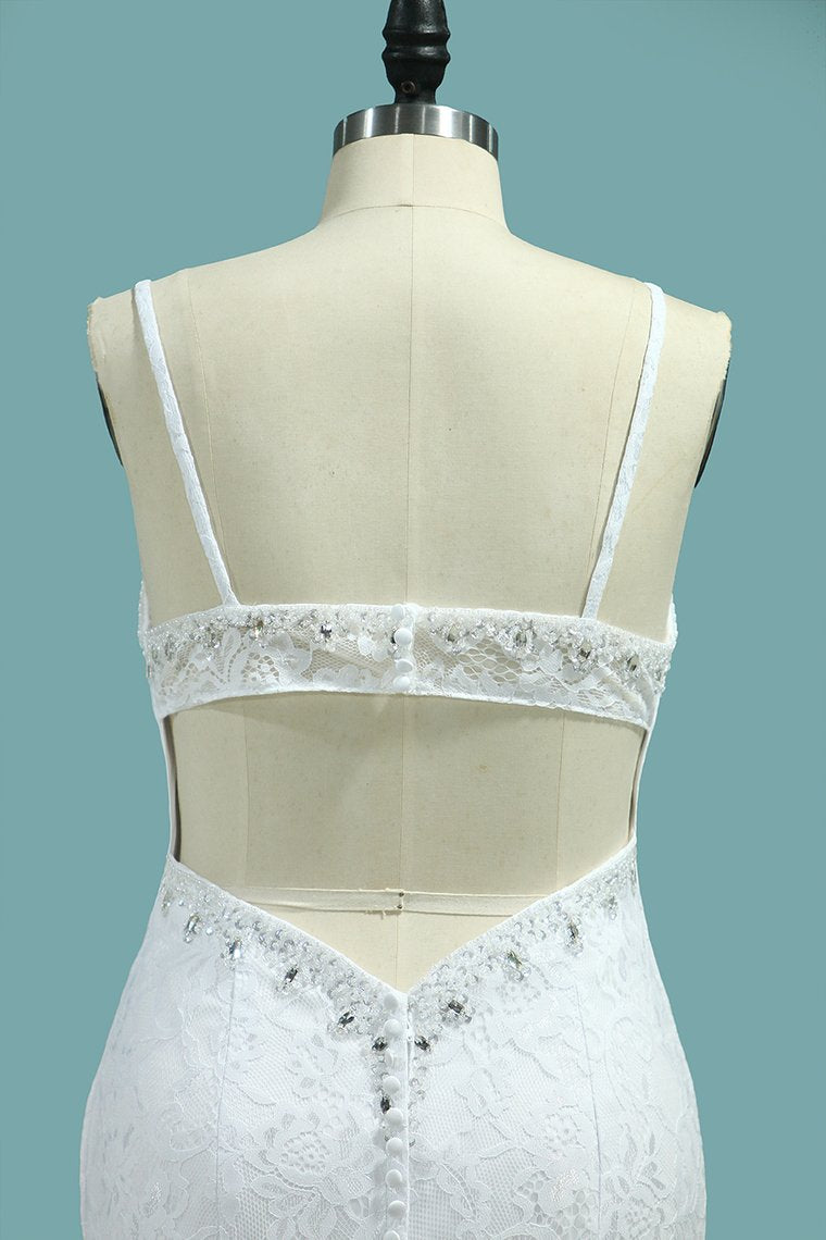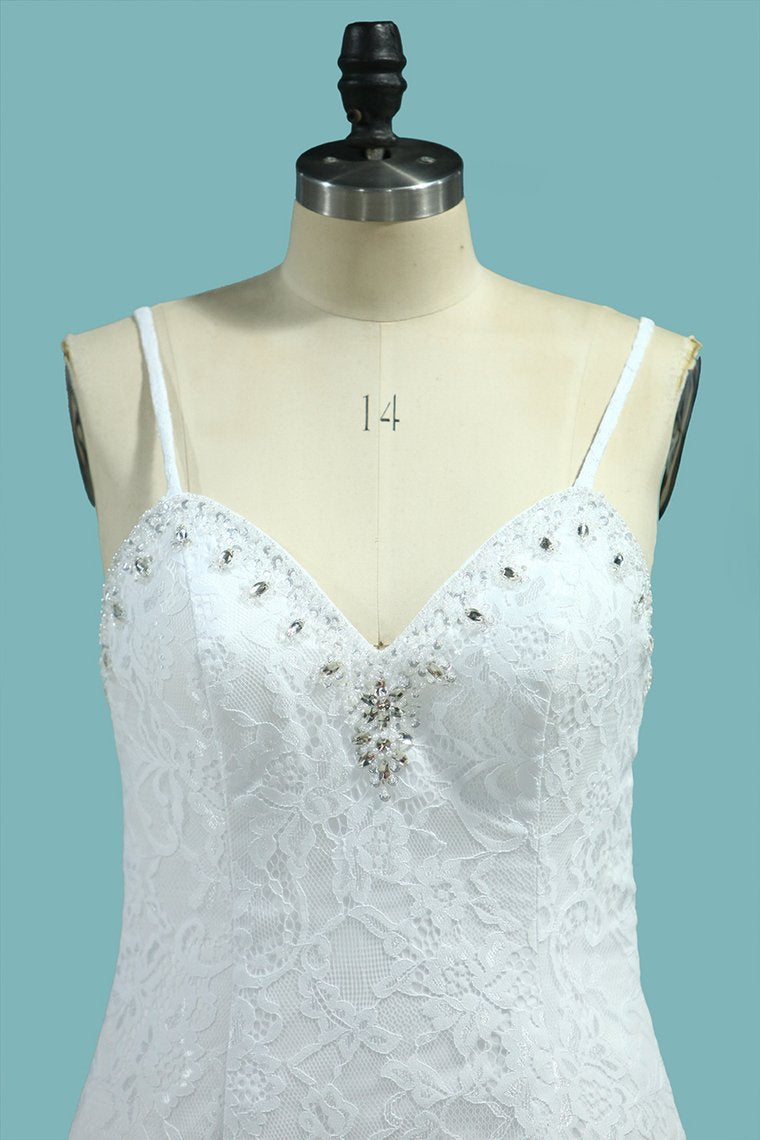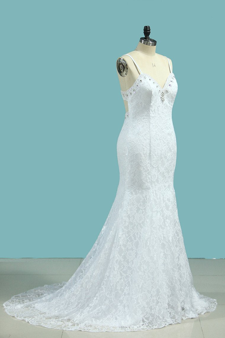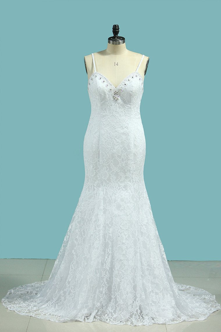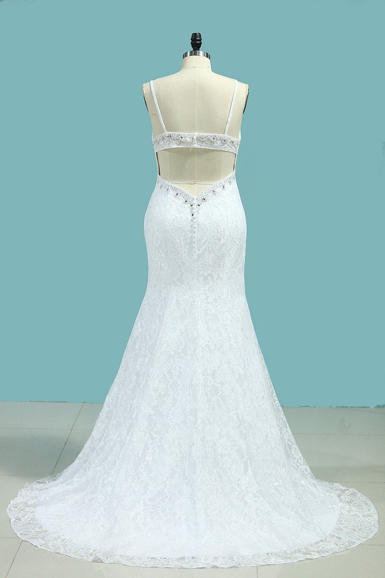 2024 Mermaid Spaghetti Straps Wedding Dresses Open Back Lace With Beading