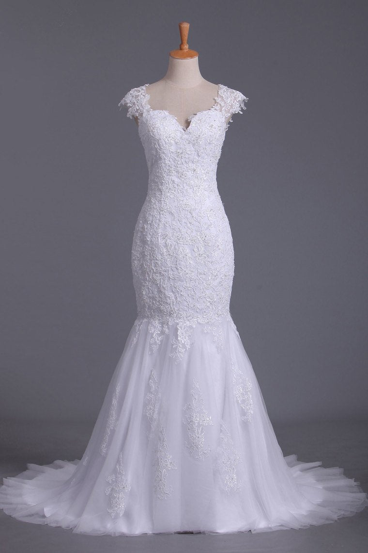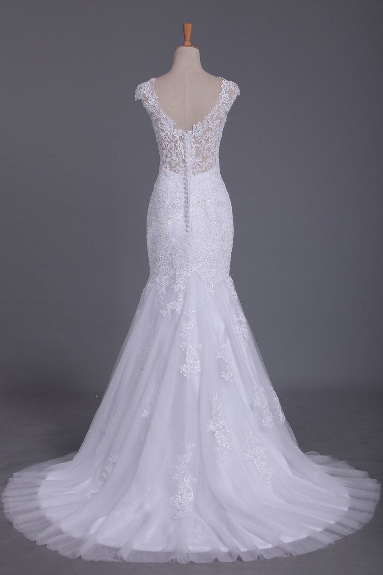2024 Mermaid Straps Open Back Wedding Dresses Tulle Court Train