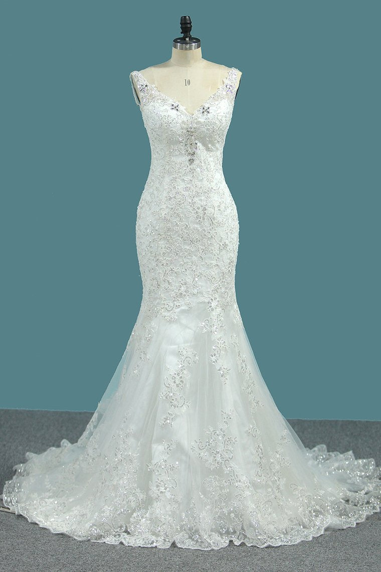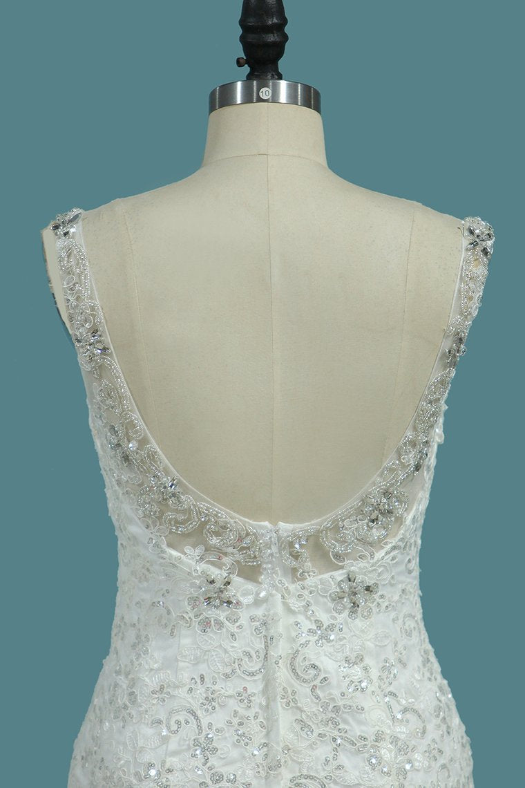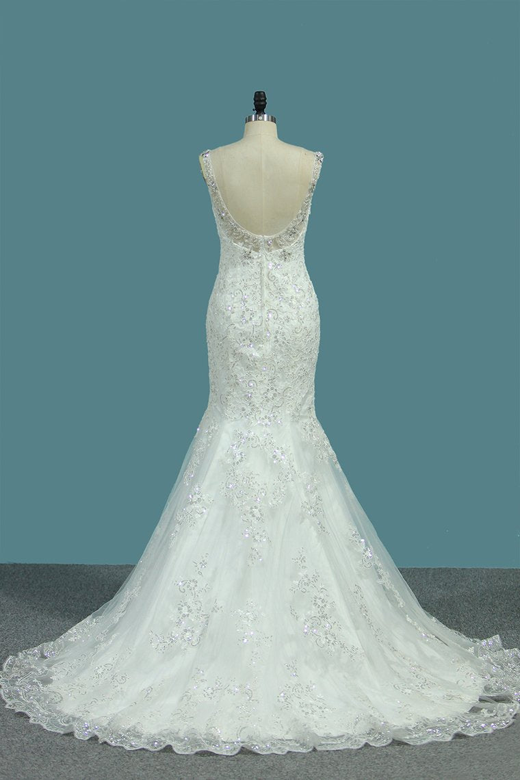 2024 Mermaid Straps Open Back Wedding Dresses With Applique And Beads