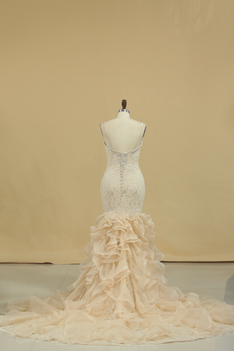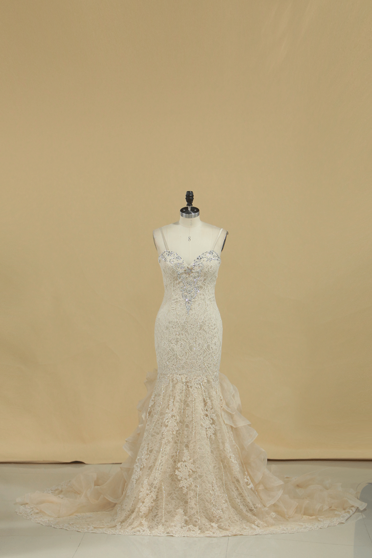 2024 Mermaid Sweetheart Tulle Wedding Dresses With Applique And Beads
