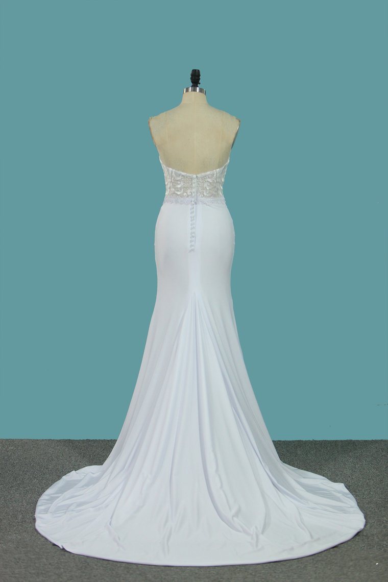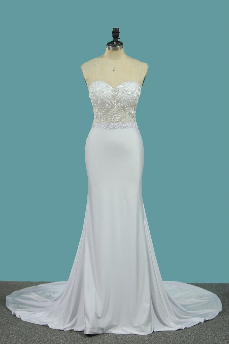2024 Mermaid Sweetheart Wedding Dresses Spandex & Lace Sweep Train