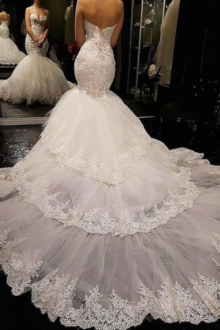 2024 Mermaid/Trumpet Sweetheart Tulle Wedding Dresses With Appliques