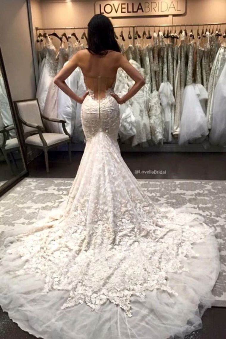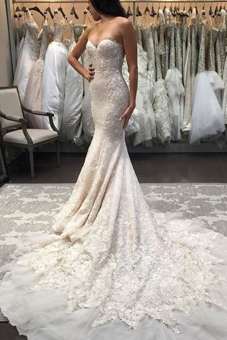2024 Mermaid/Trumpet Sweetheart Tulle Wedding Dresses With Appliques Zipper Up