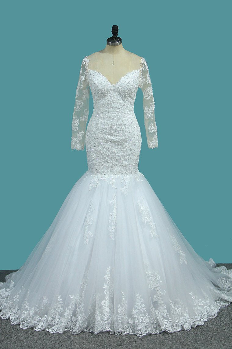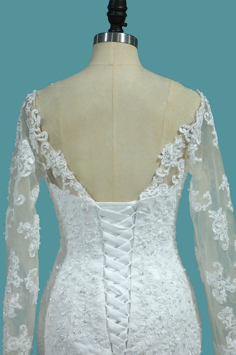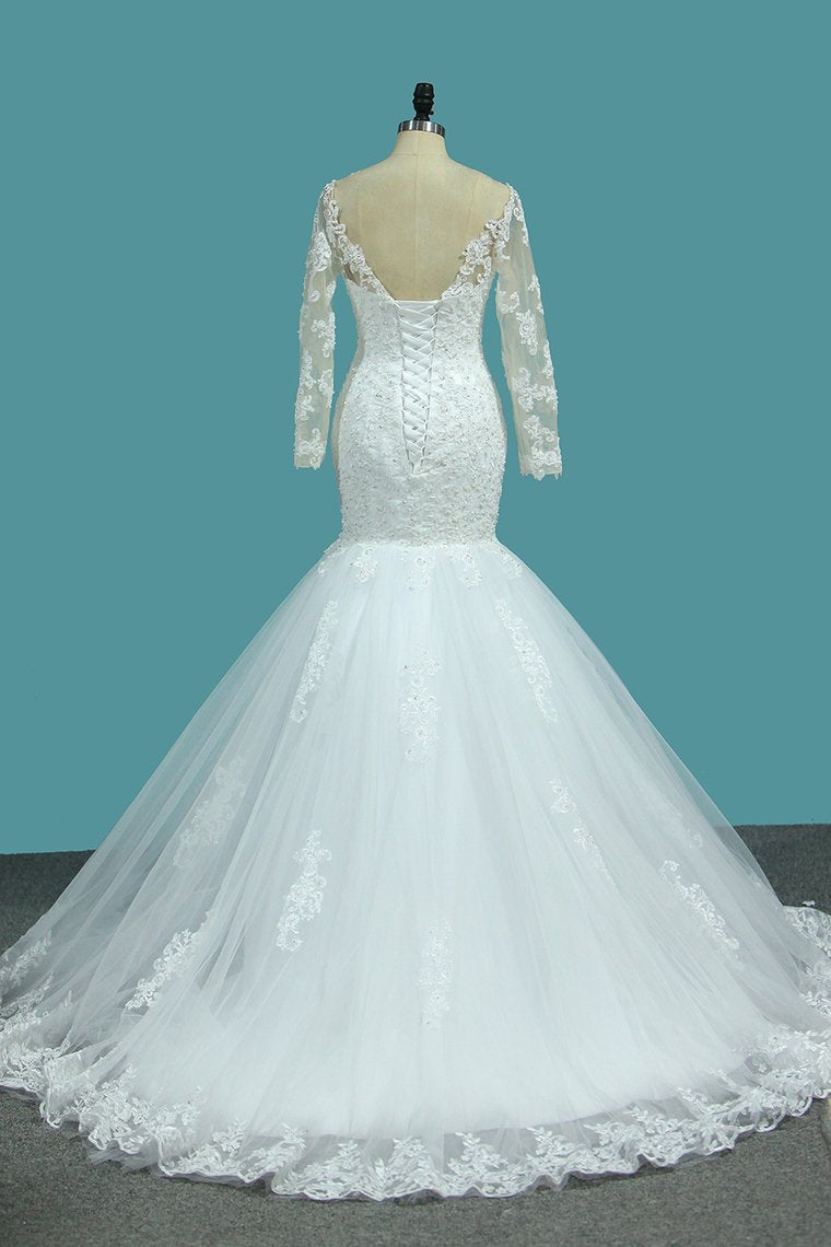 2024 Mermaid Tulle Long Sleeves Off The Shoulder Wedding Dresses With Applique
