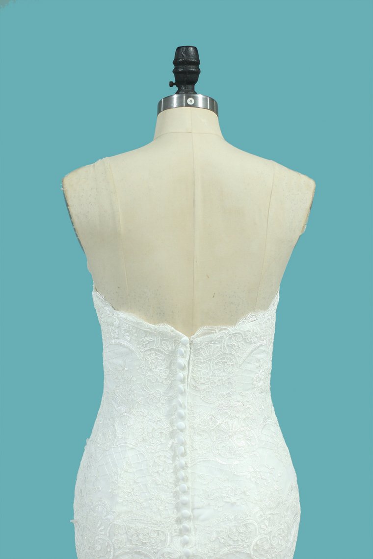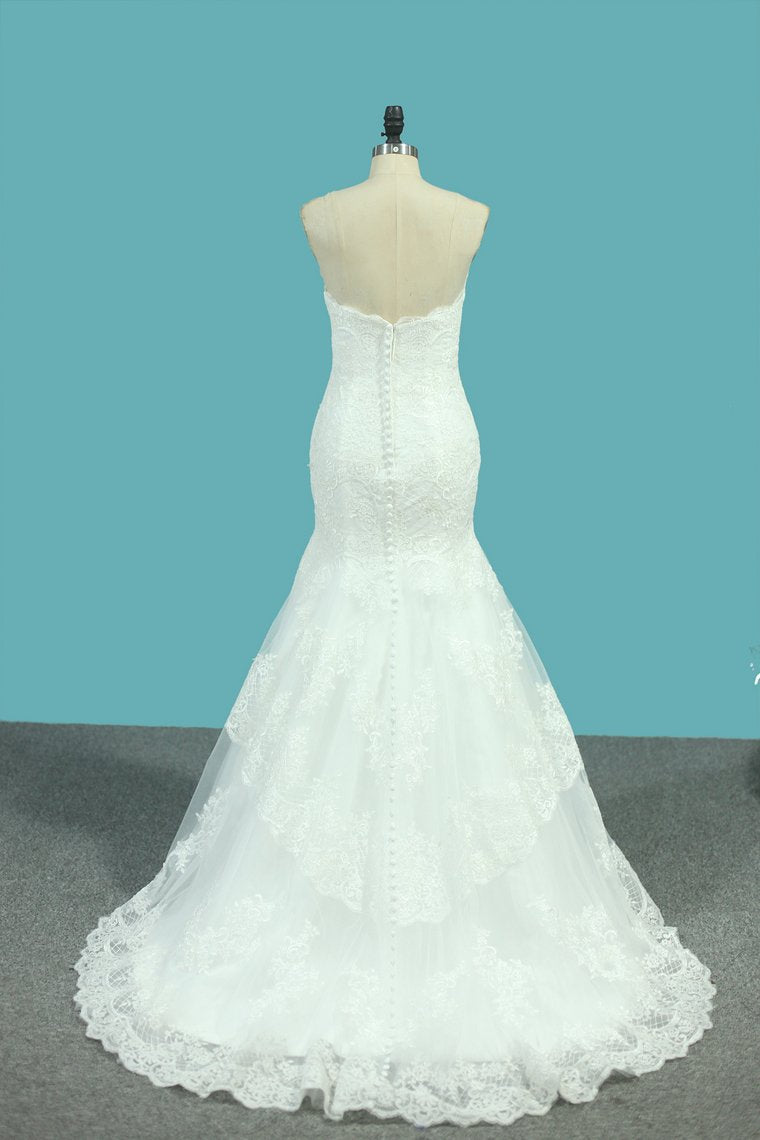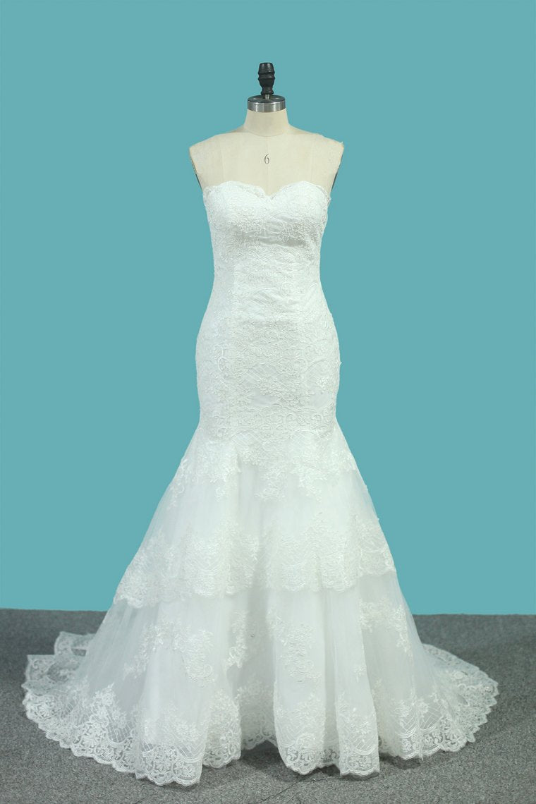 2024 Mermaid Tulle Sweetheart Wedding Dresses With Applique Court Train
