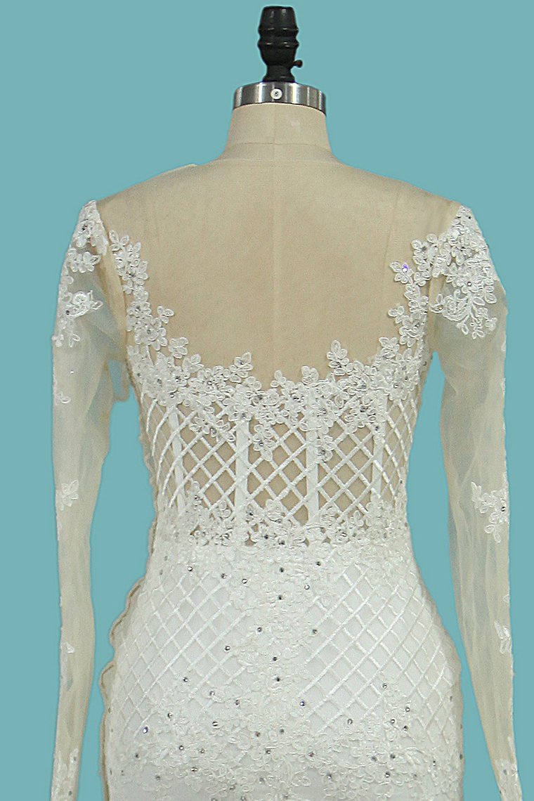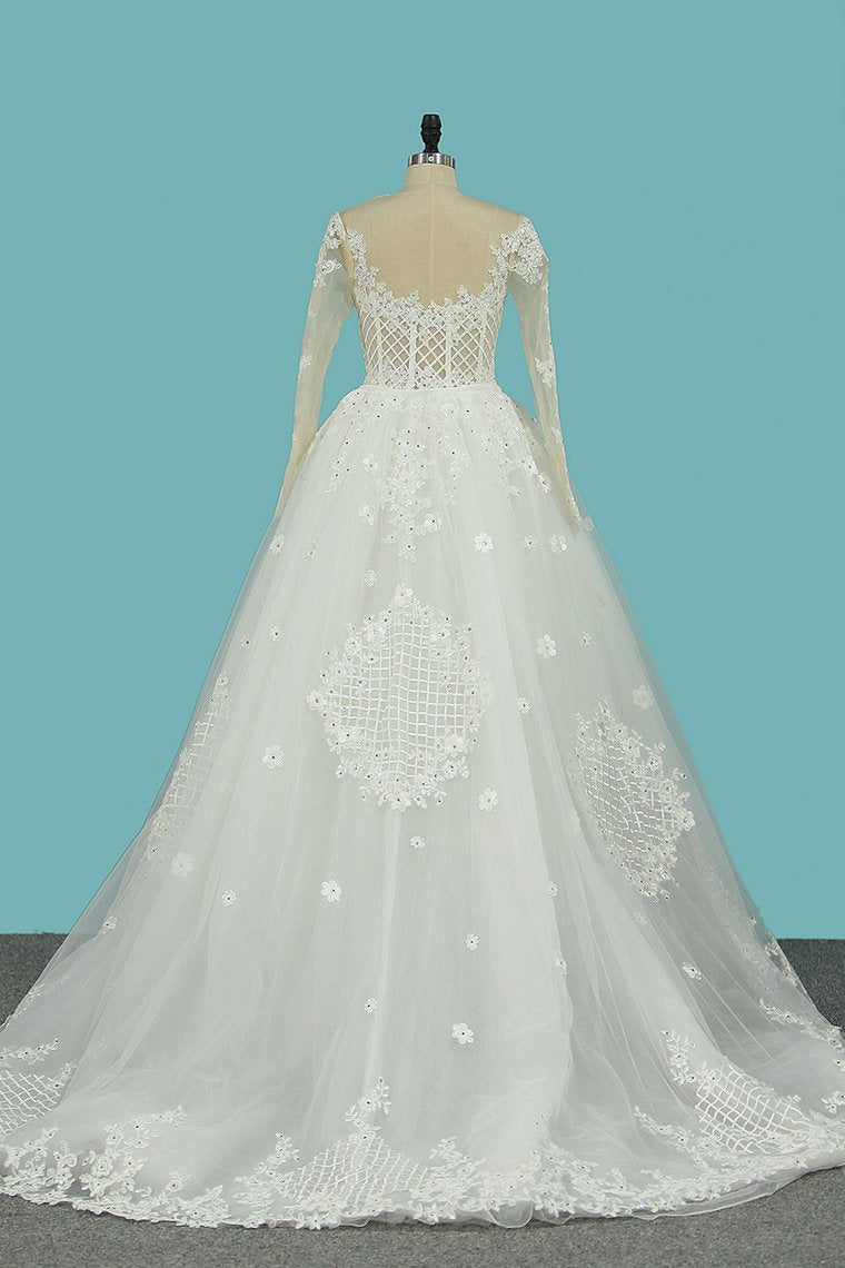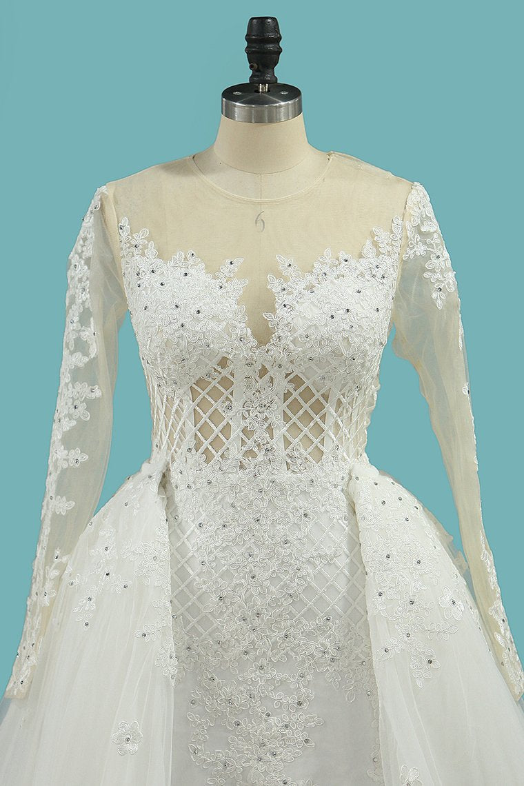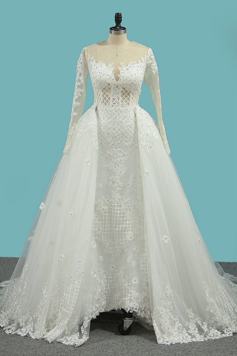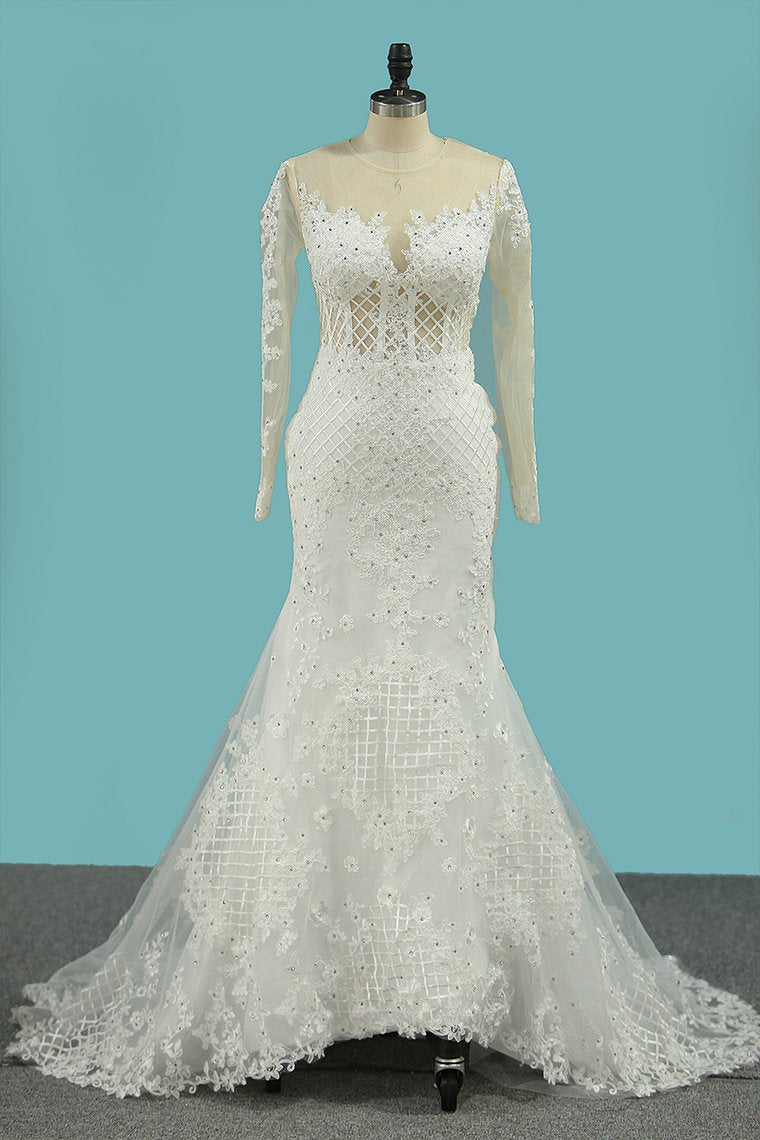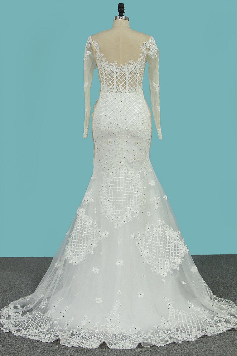 2024 Mermaid Tulle Wedding Dresses Long Sleeves Scoop With Applique