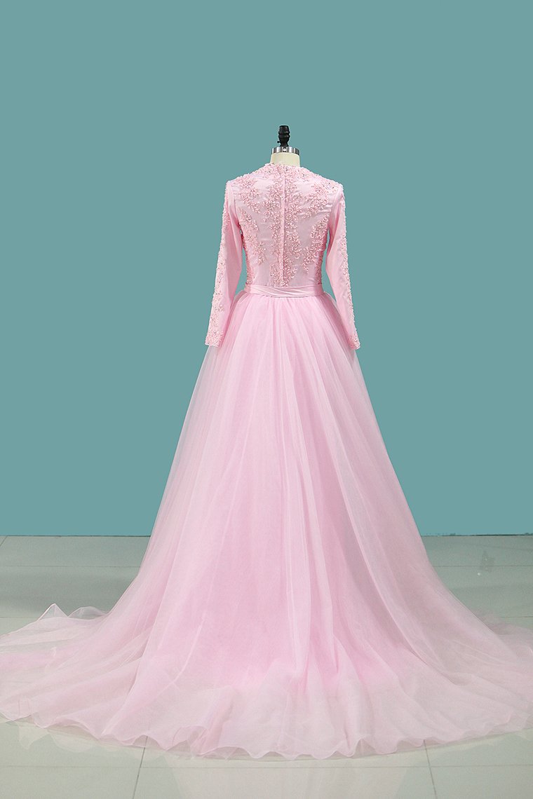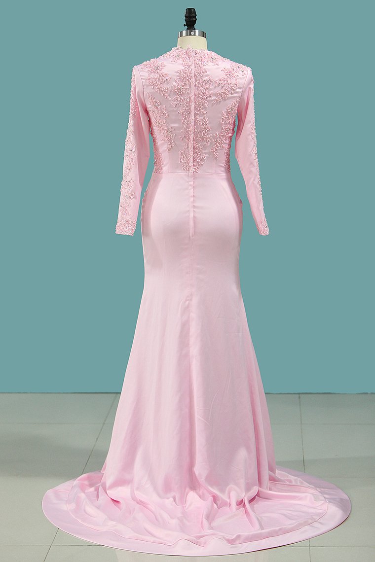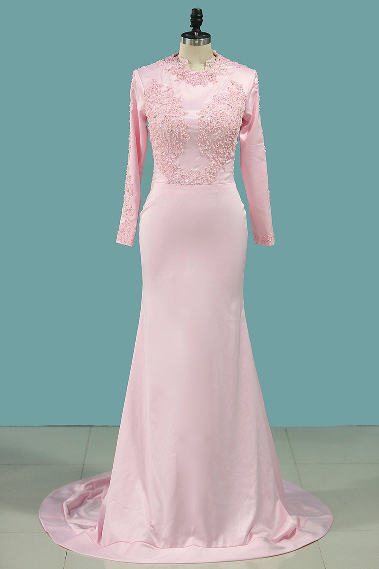 2024 Mermaid Wedding Dresses Scoop Long Sleeves Stretch Satin With Tulle Detachable Train