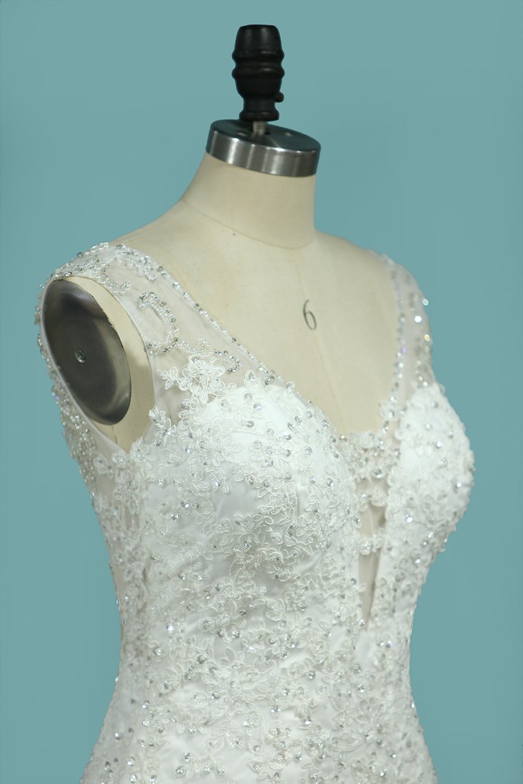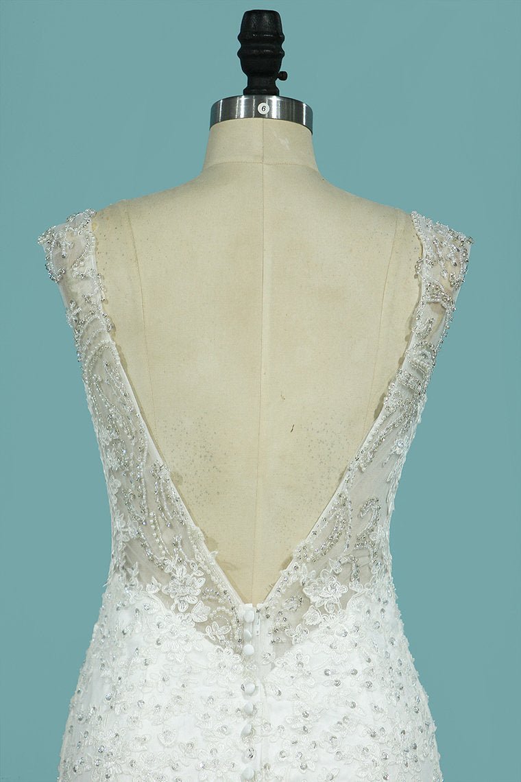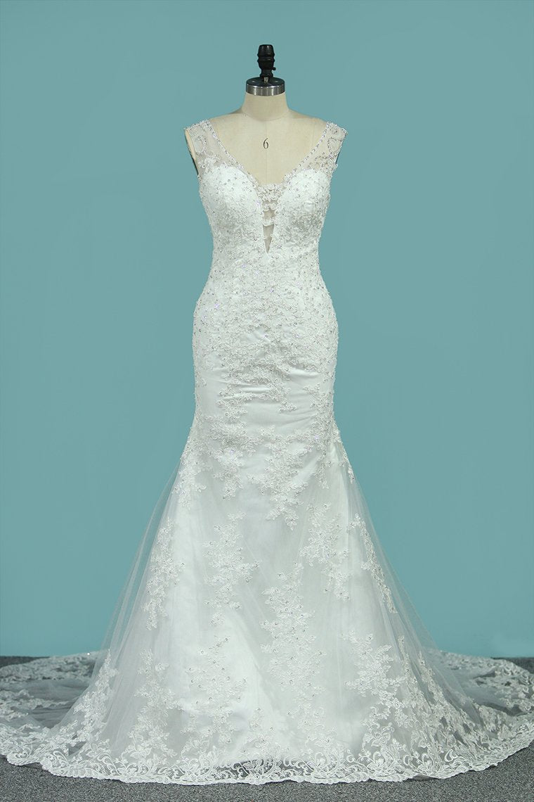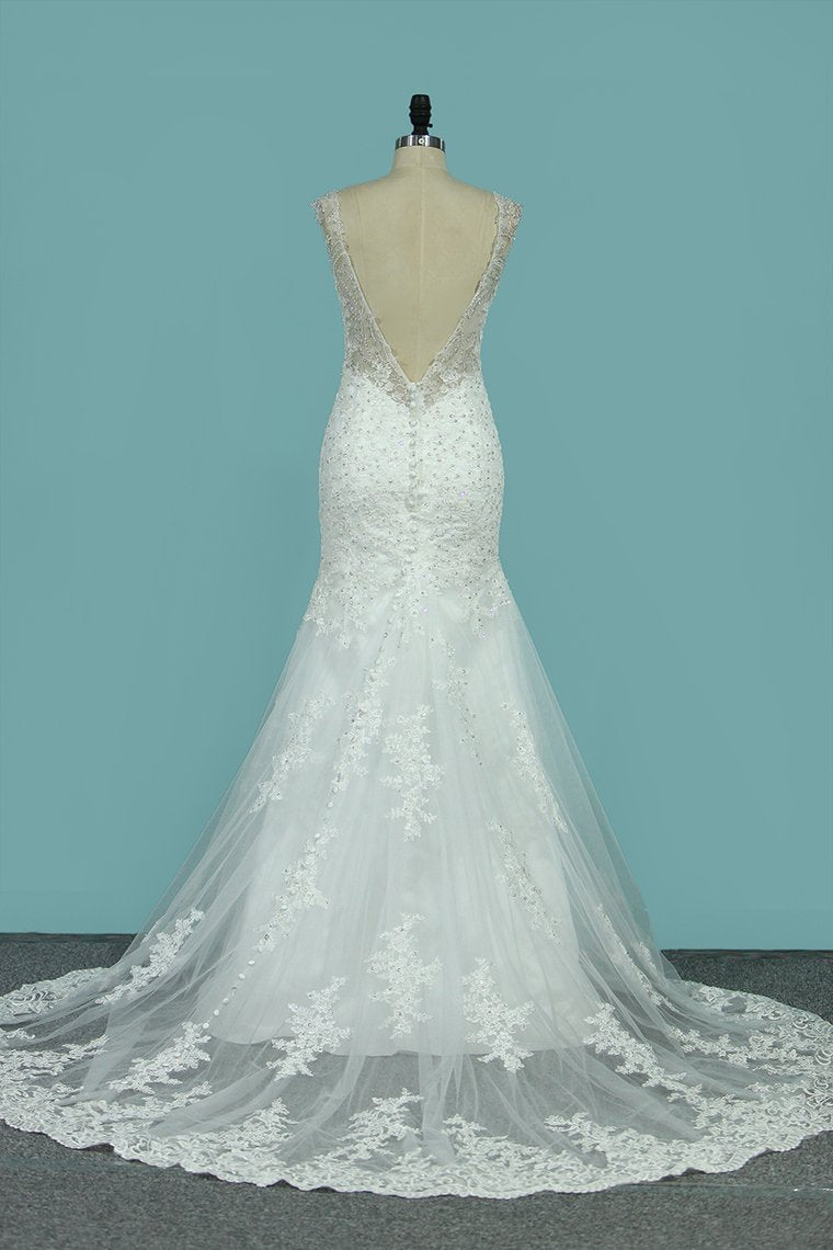 2024 Mermaid Wedding Dresses Sexy Open Back V Neck With Applique