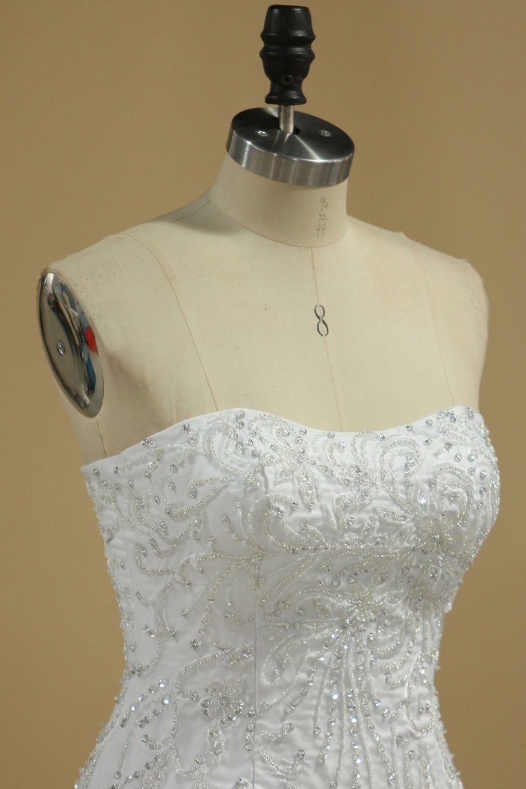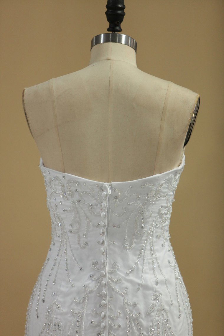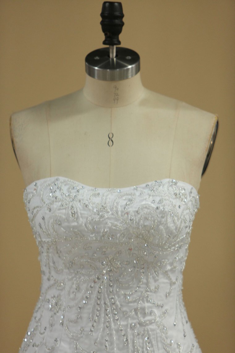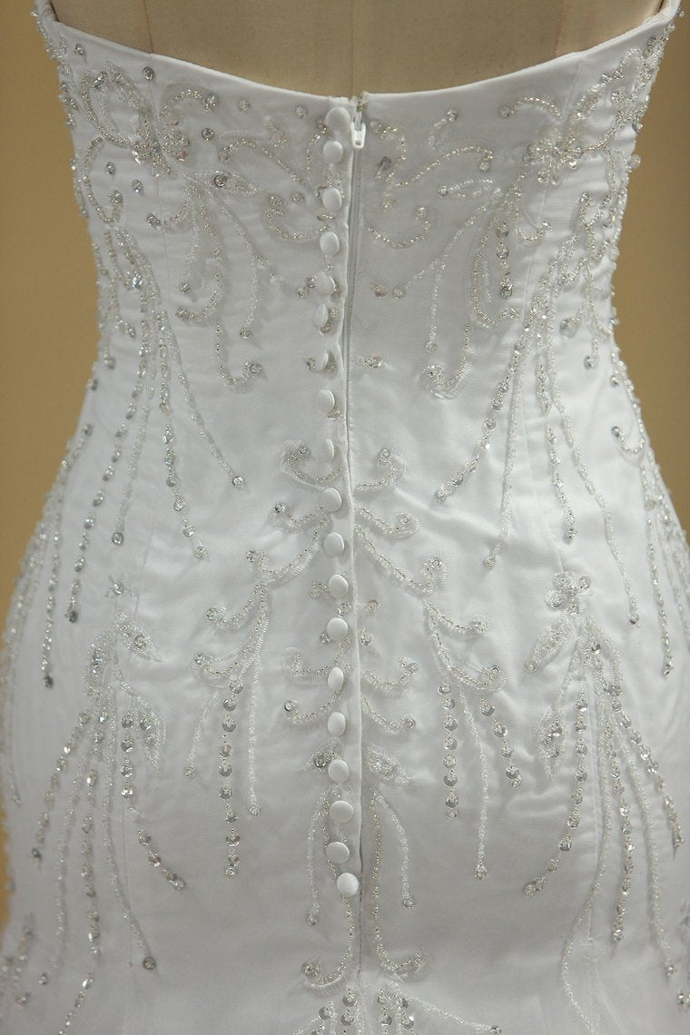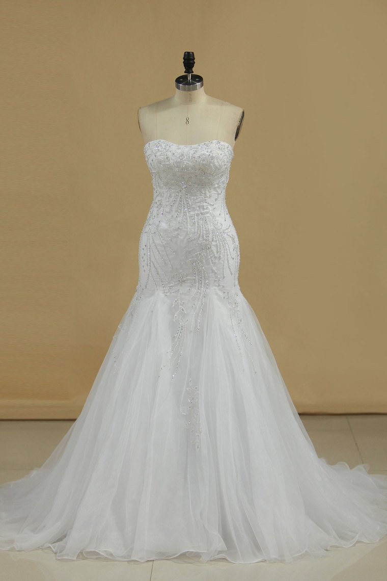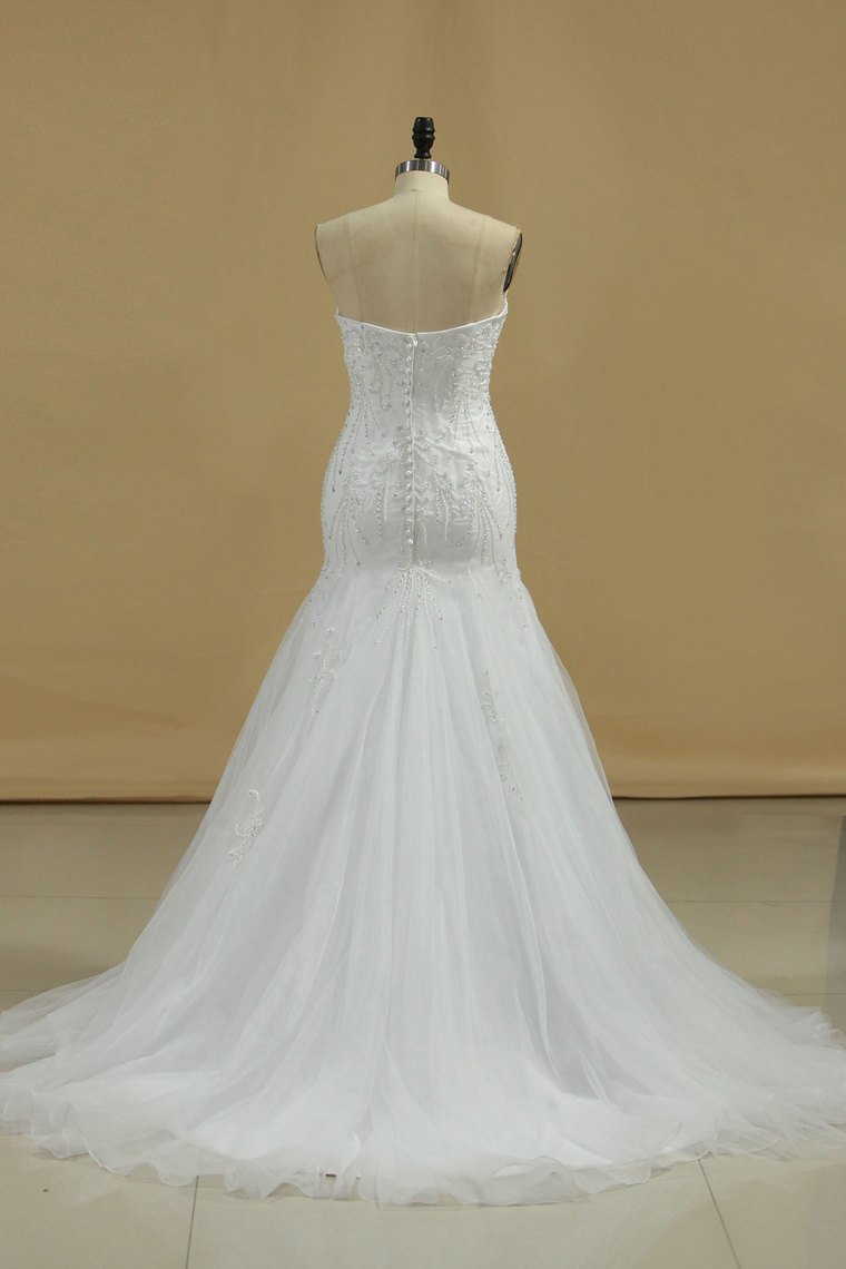 2024 Mermaid Wedding Dresses Strapless Tulle With Beads And Embroidery Court Train