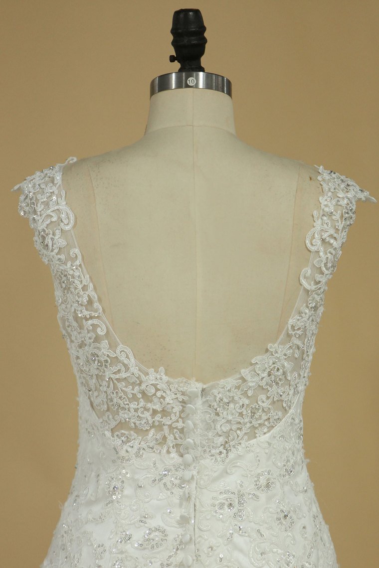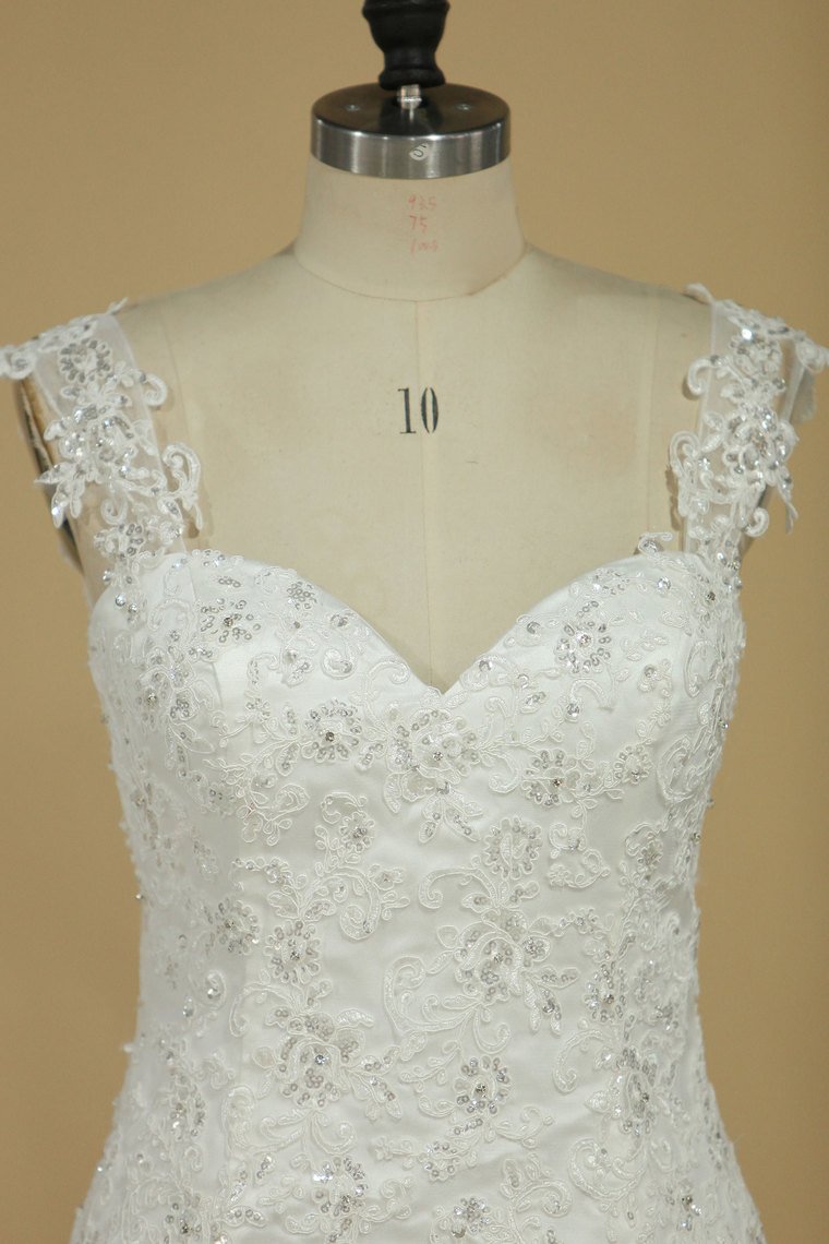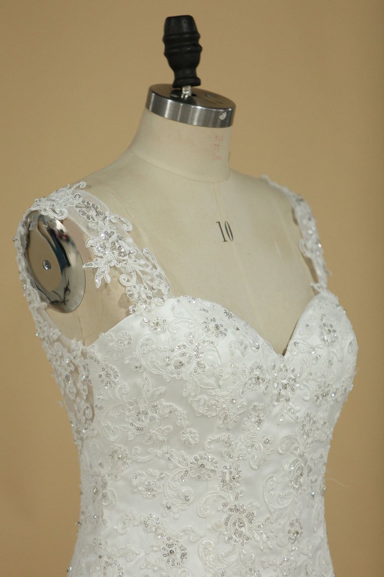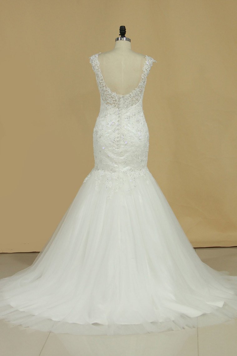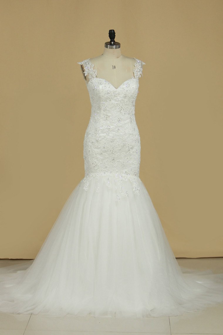 2024 Mermaid Wedding Dresses Straps Tulle Court Train With Applique