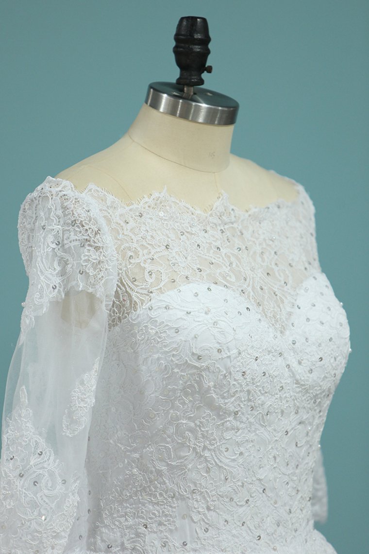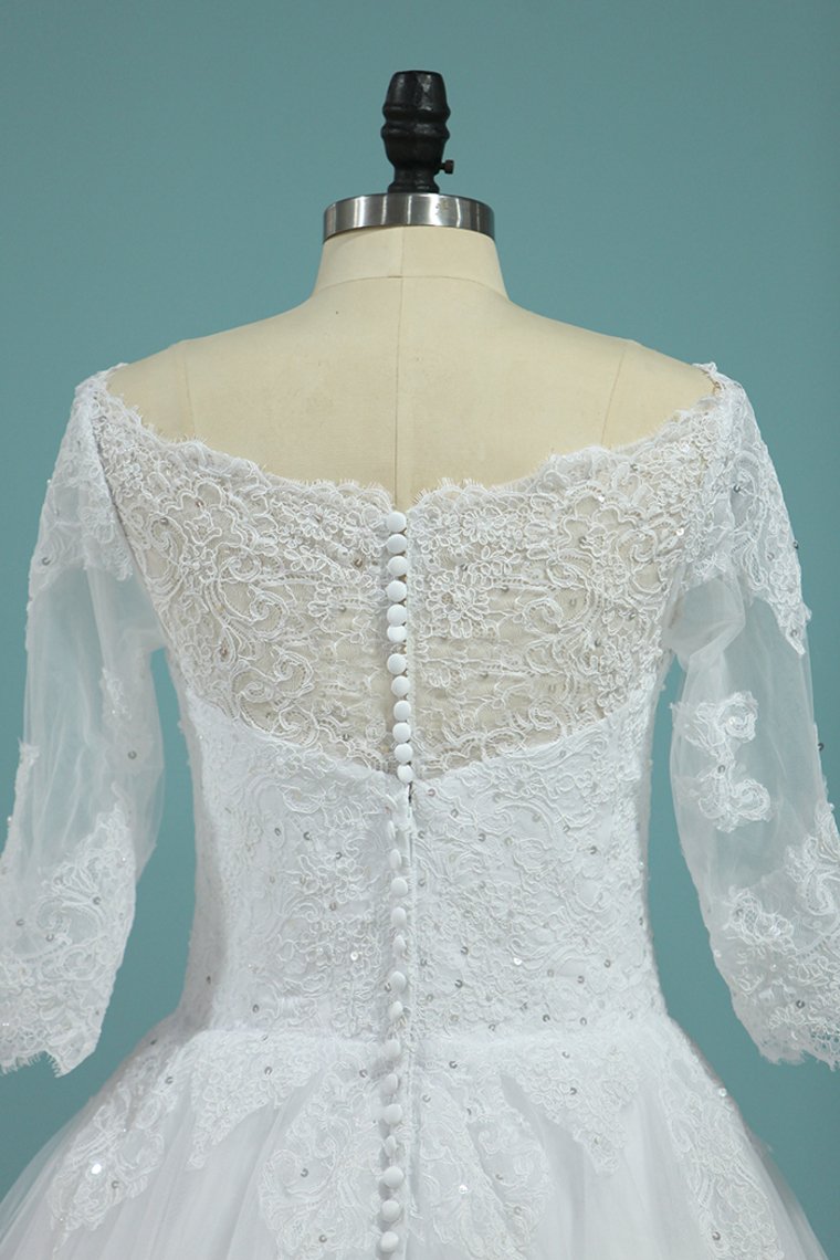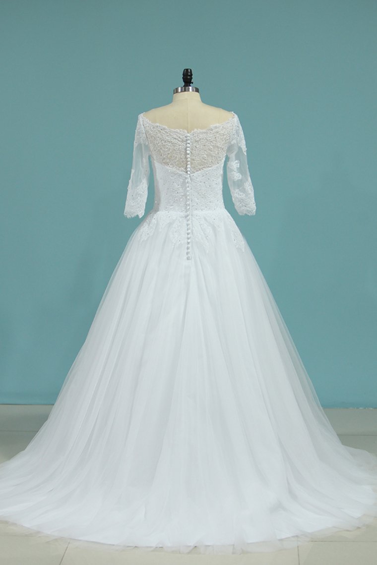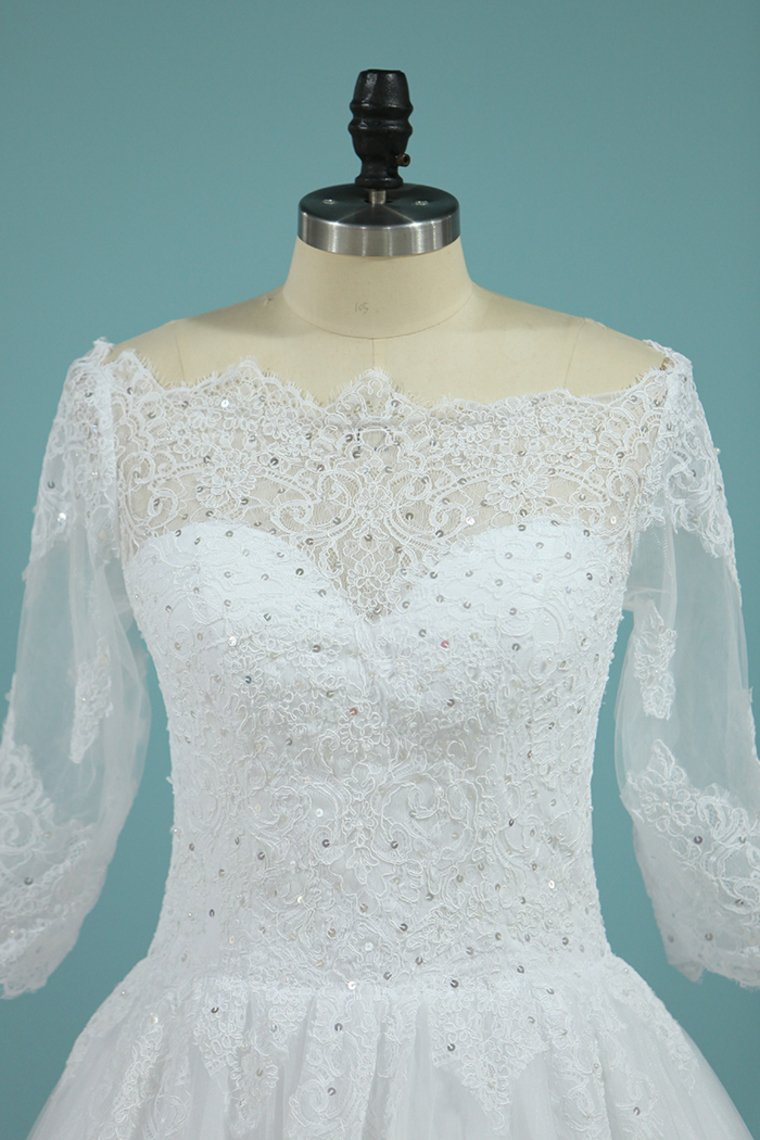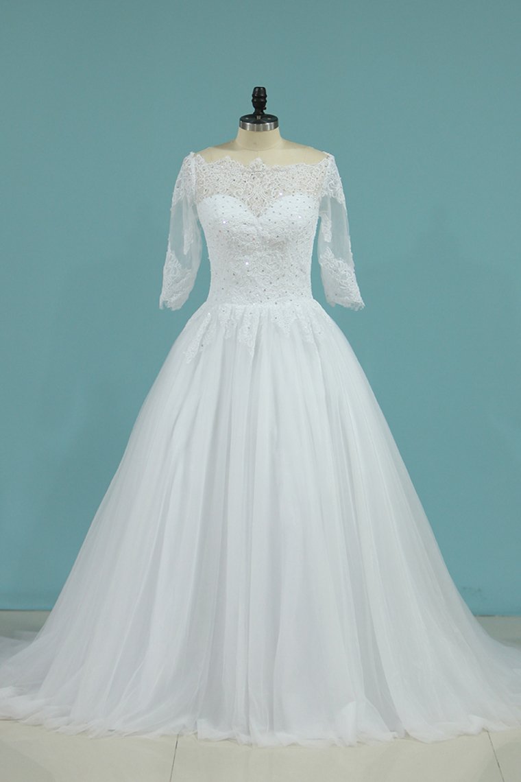 2024 Mid-Length Sleeves Baot Neck Wedding Dresses A Line With Applique
