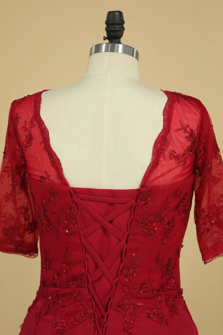 2024 Mother Of The Bride Dreeses Scoop Mid-Length Sleeves With Applique Chiffon