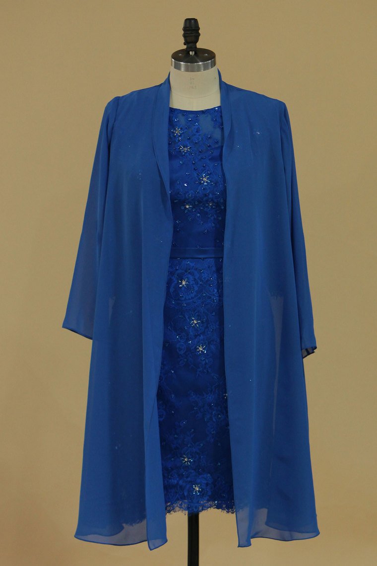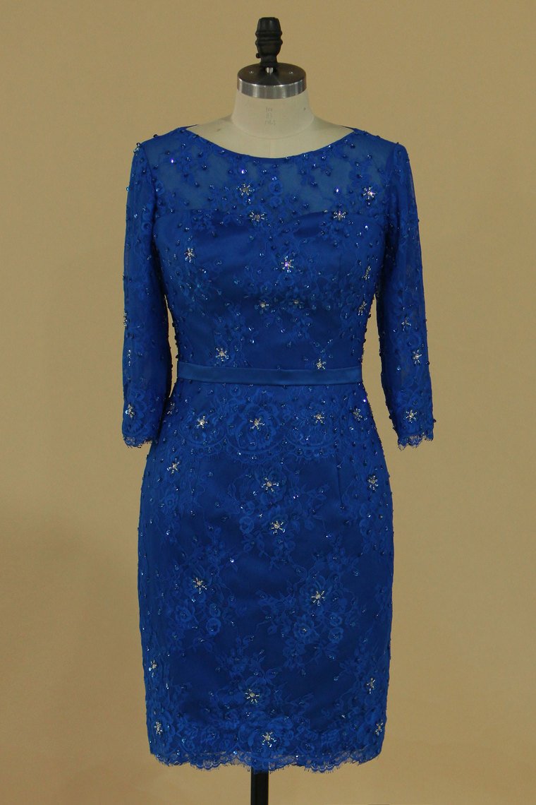 2024 Mother Of The Bride Dresses 3/4 Length Sleeves Scoop With Sash Sheath Lace