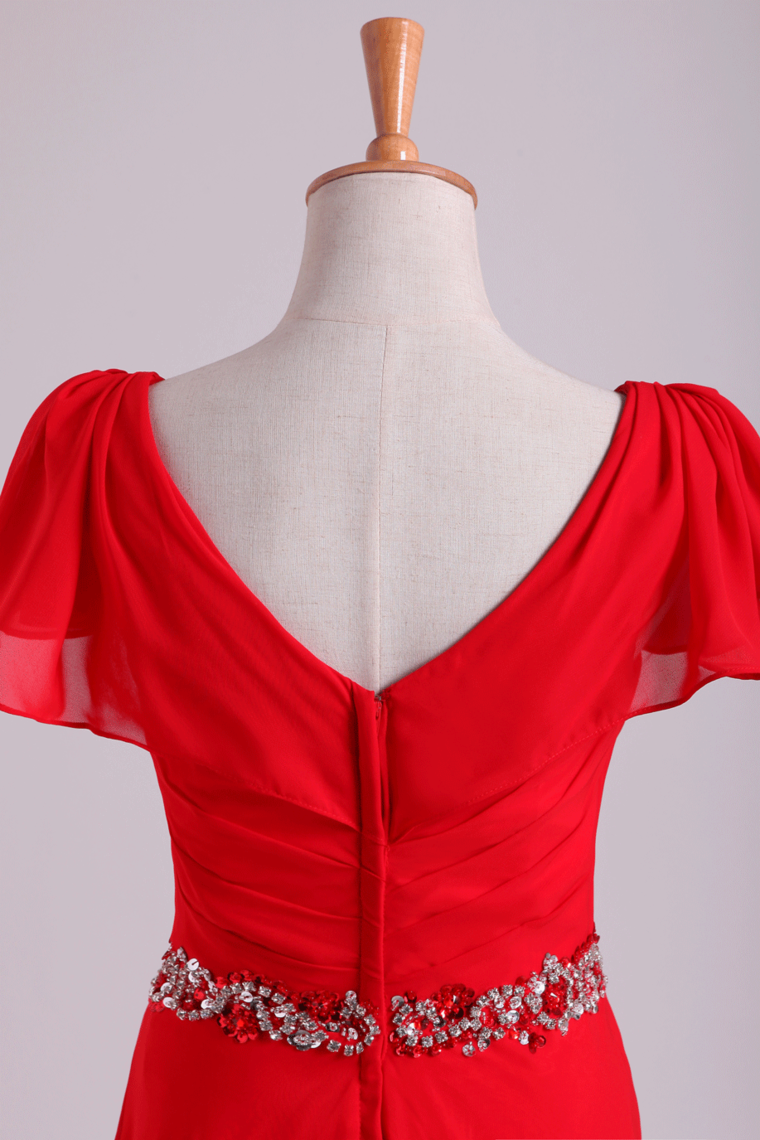 2024 Mother Of The Bride Dresses V-Neck Floor-Length Chiffon With Beading Waist Line