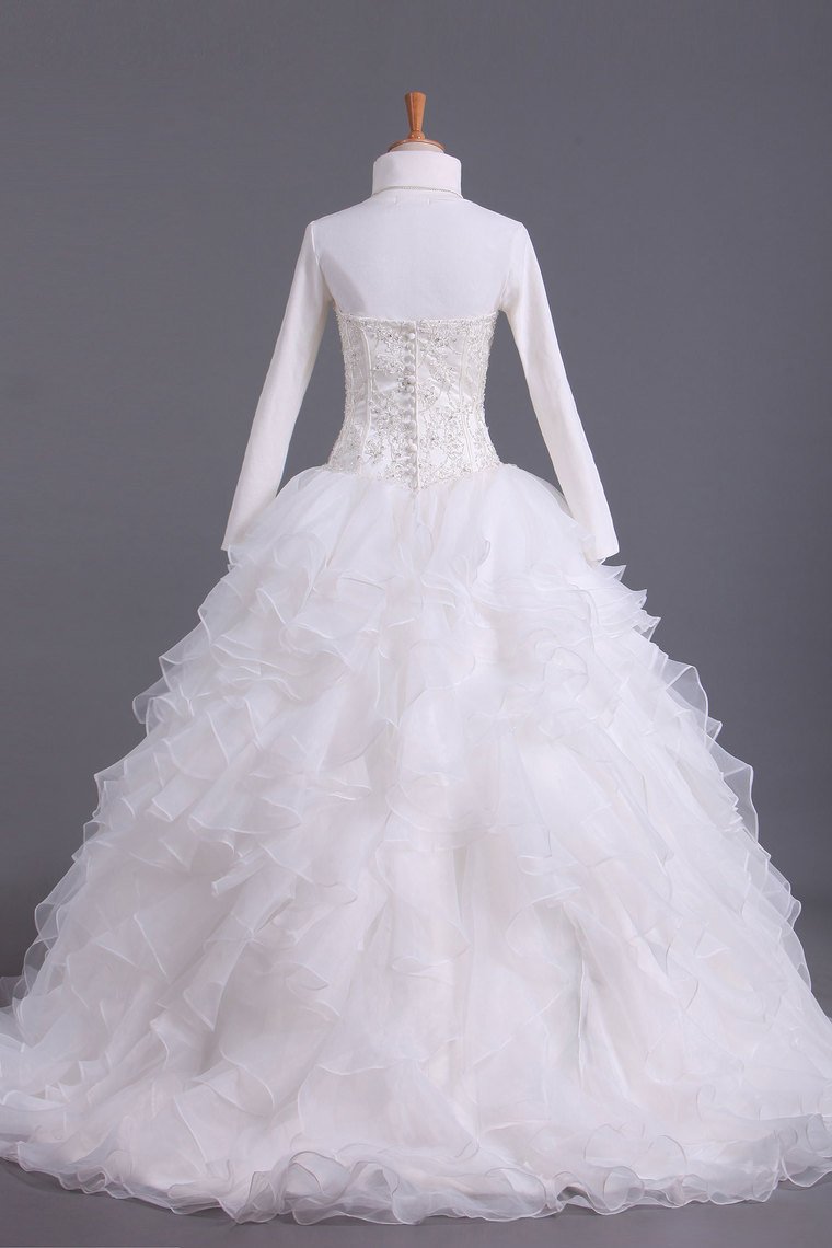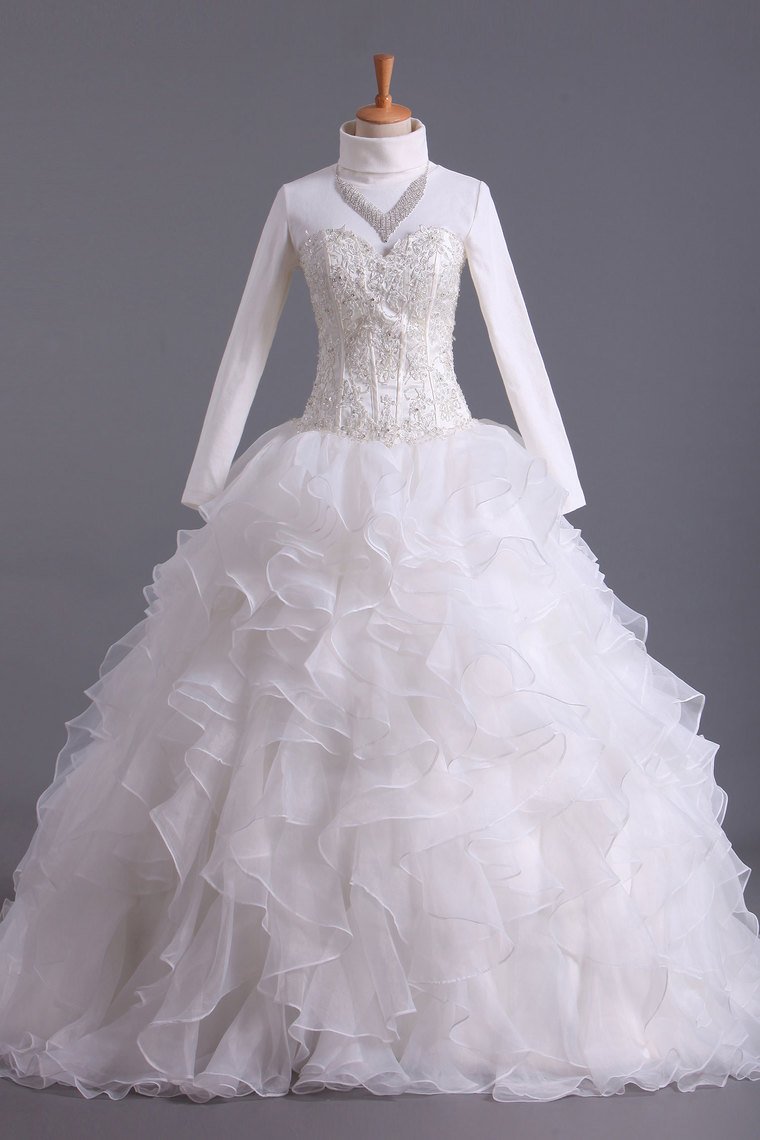 2024 Musilim Wedding Dresses A Line Sweetheart Organza With Beads & Applique