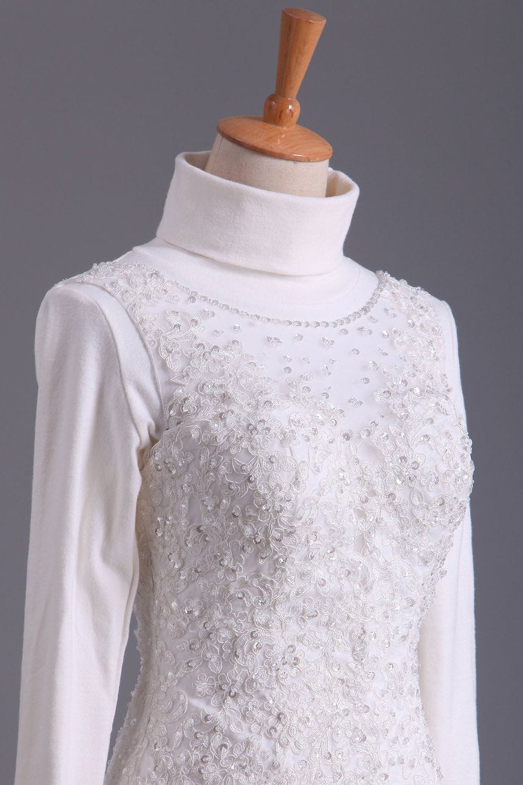 2024 Muslim High Neck Mermaid/Trumpet Wedding Dresses With Applique Tulle