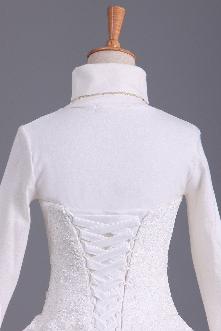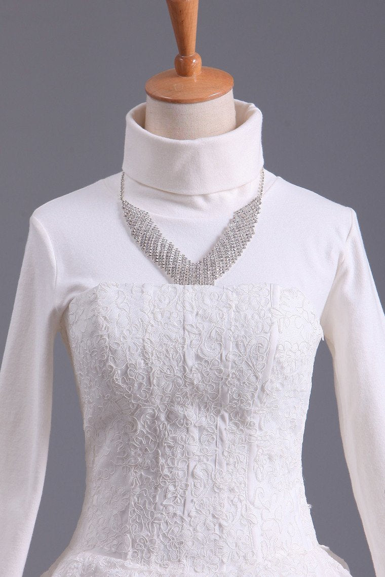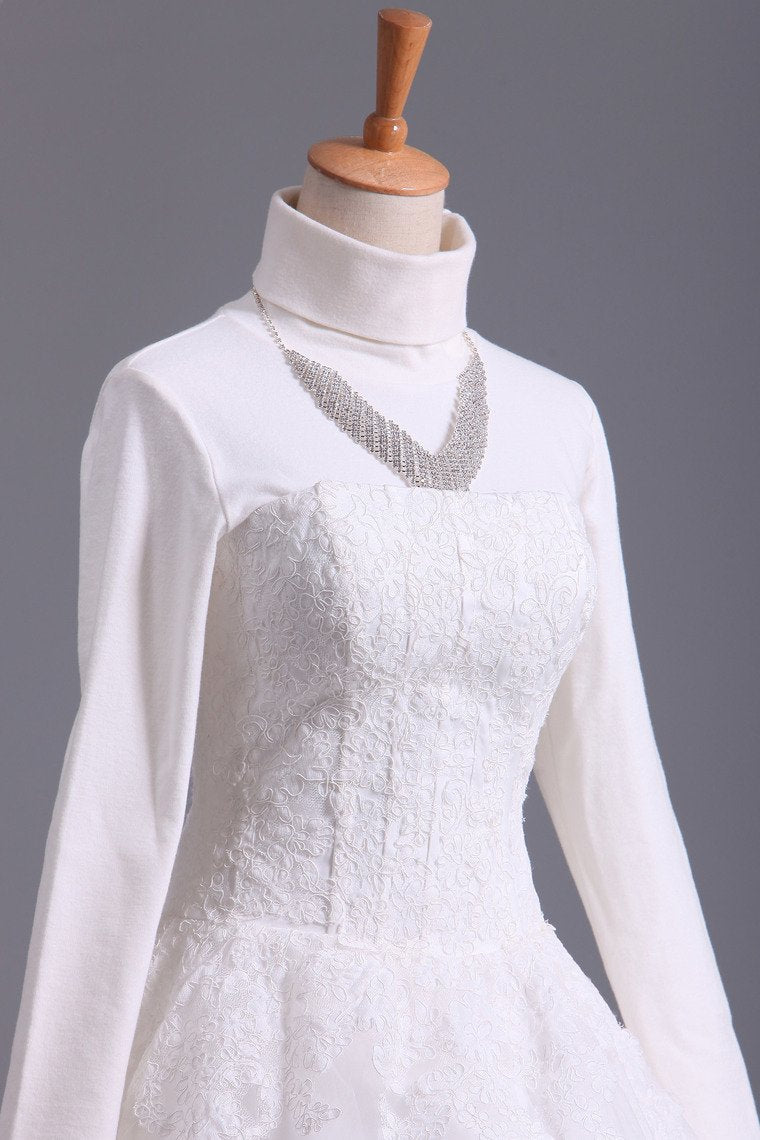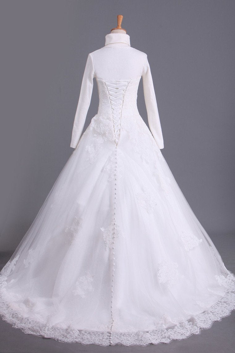 2024 Muslim Wedding Dresses A Line High Neck Tulle With Applique Court Train