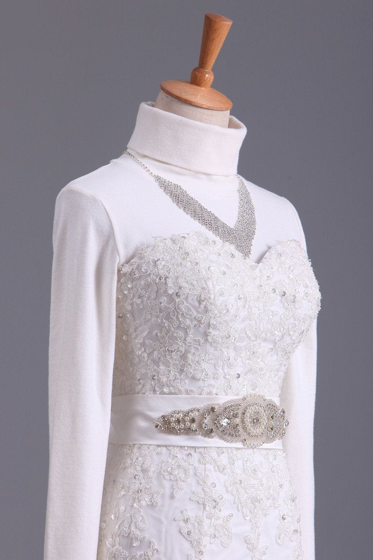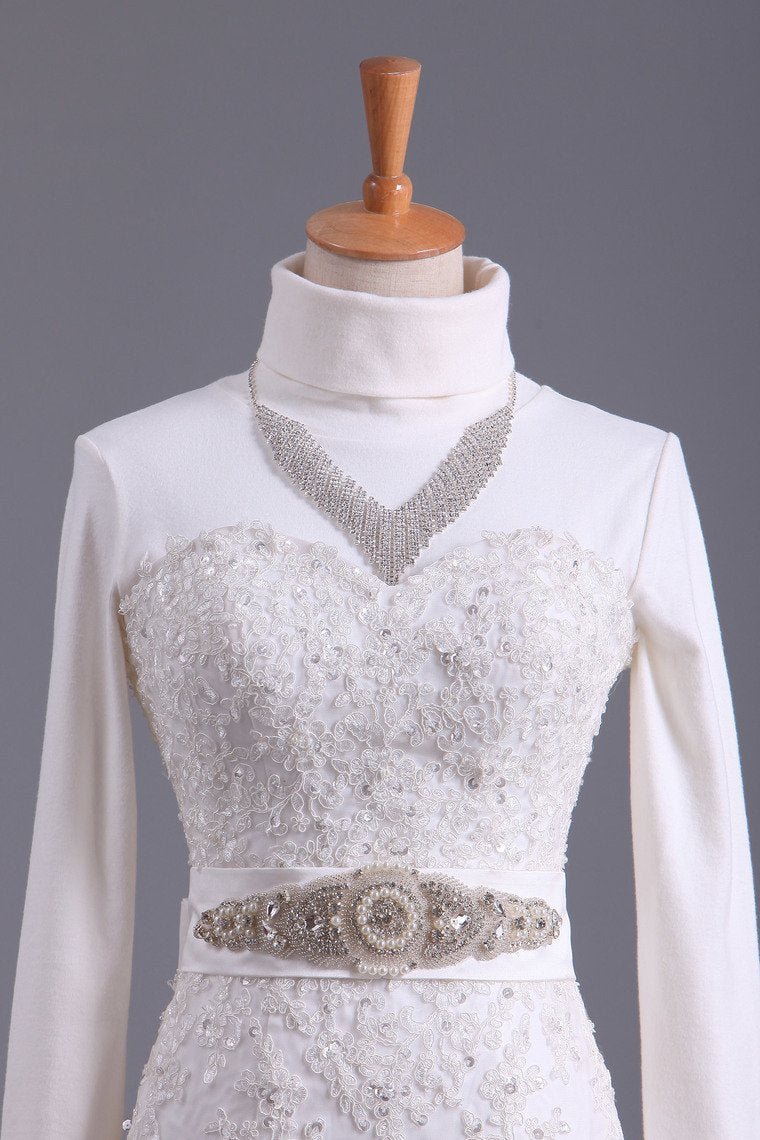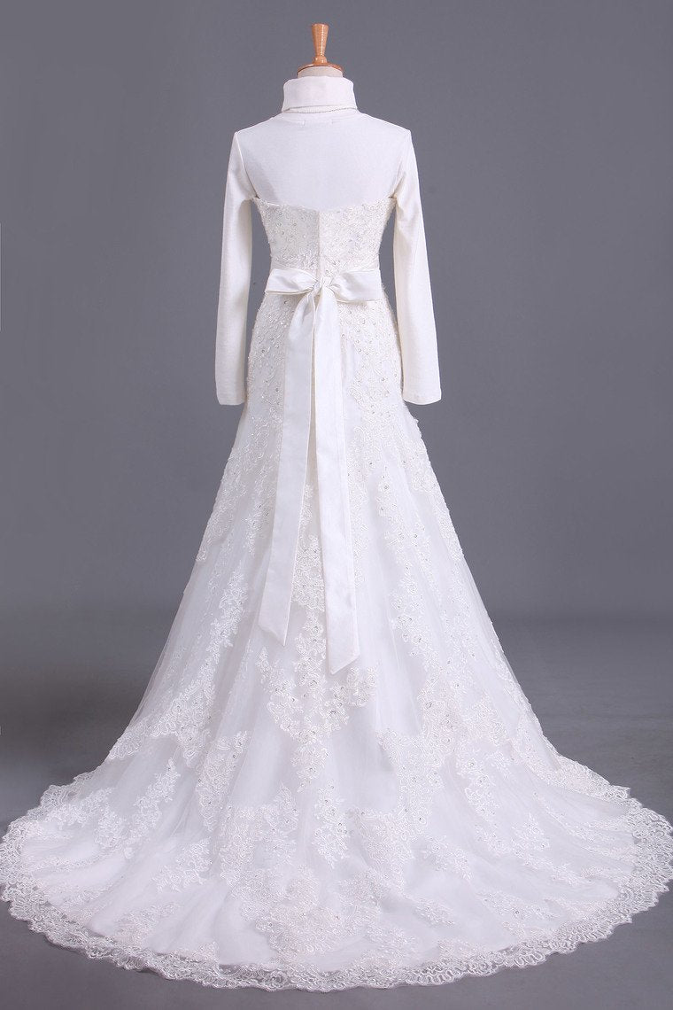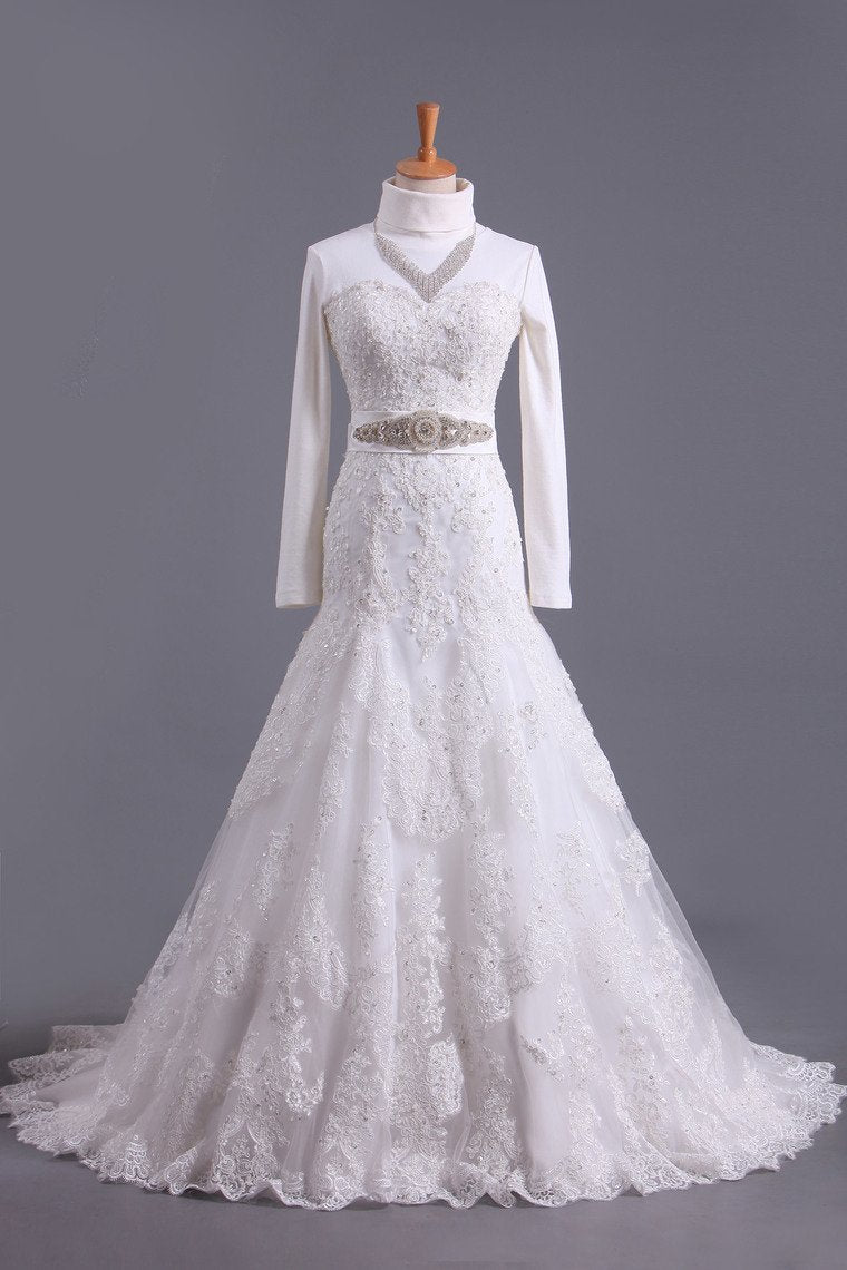 2024 Muslim Wedding Dresses Mermaid High Neck Tulle With Applique Court Train