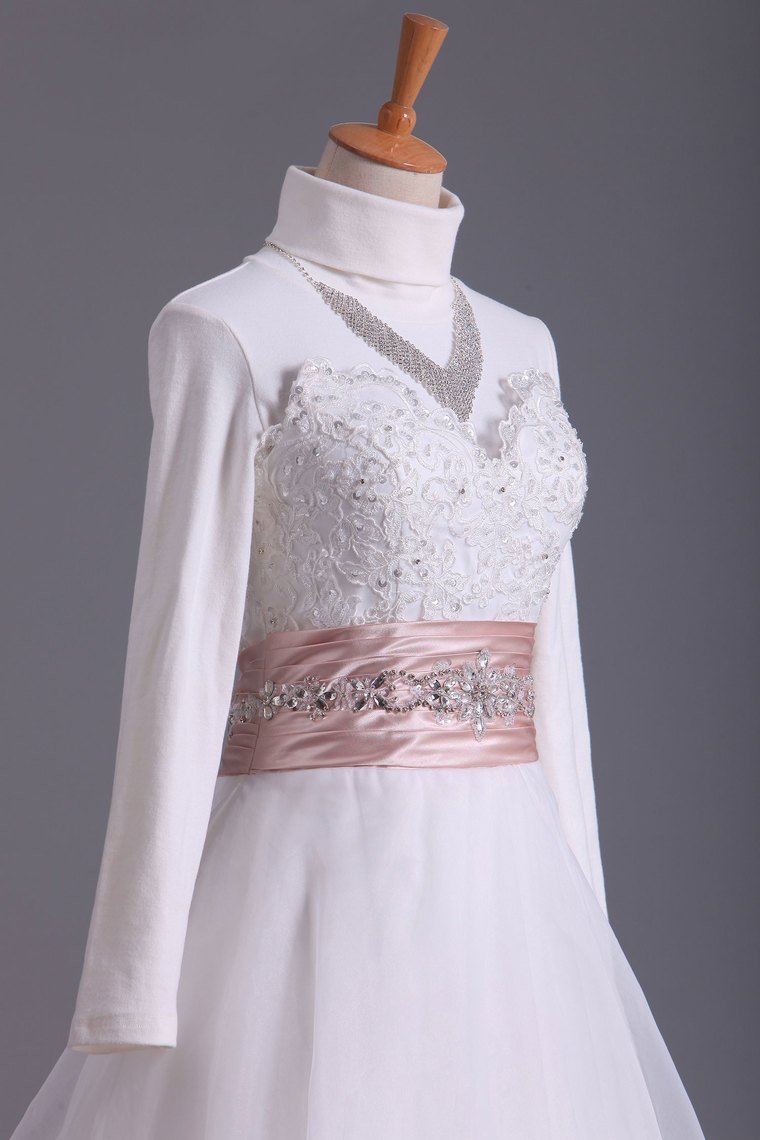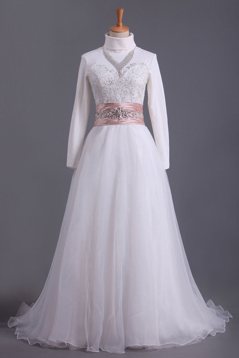 2024 Muslim Wedding Dresses Sweetheart A Line With Applique And Beads Organza