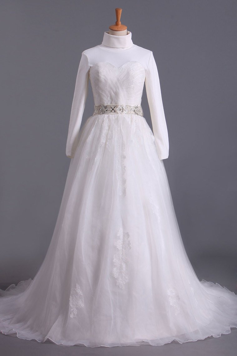 2024 Muslim Wedding Dresses Sweetheart Ball Gown Sweep/Brush Train Organza With Beading&Sequince